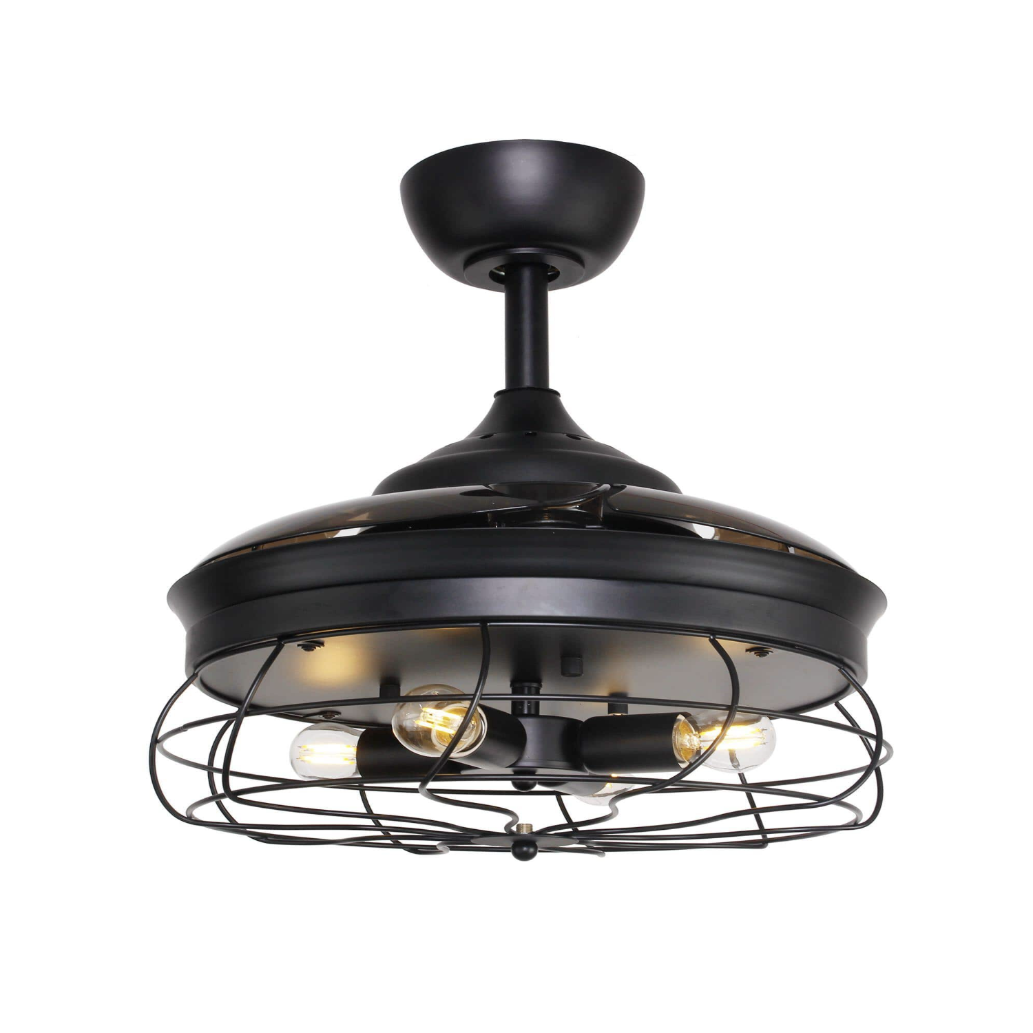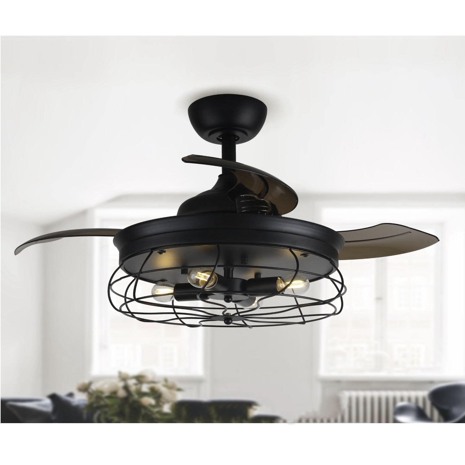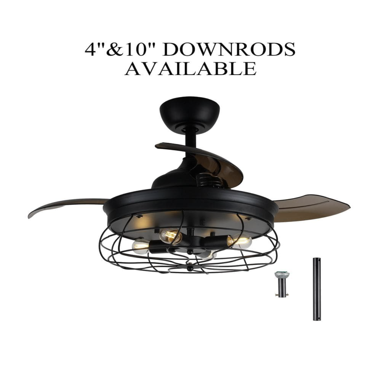 Parrot Uncle 34 in. Indoor Black Downrod Mount Retractable Ceiling Fan with Light Kit and Remote Control