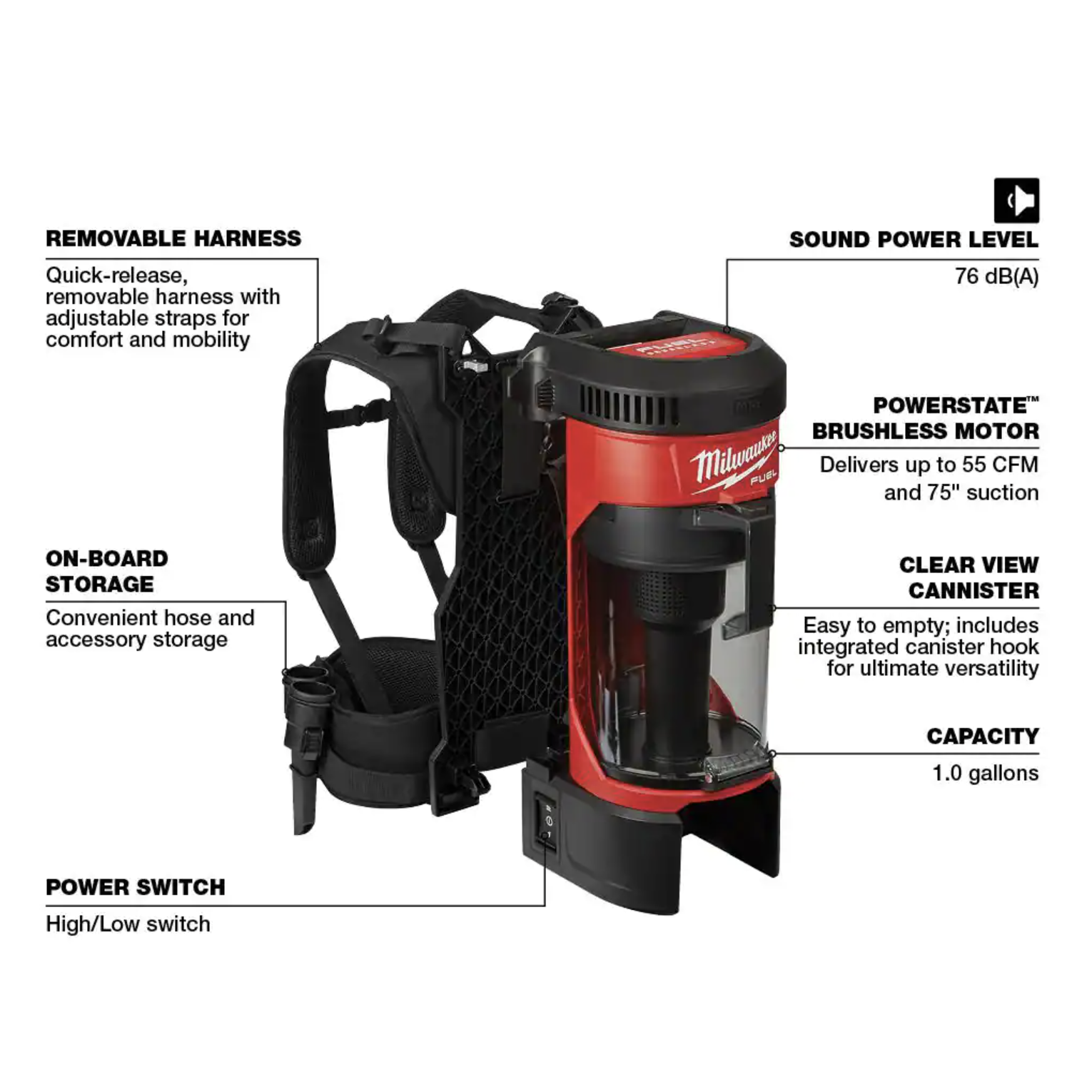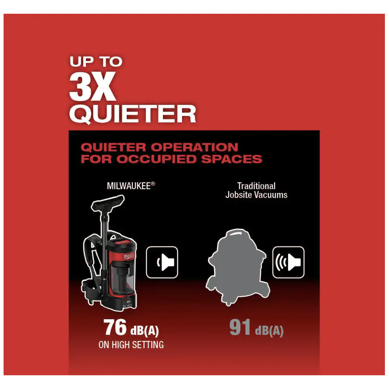 Milwaukee M18 FUEL 18-Volt Lithium-Ion Brushless 1 Gal. Cordless 3-in-1 Backpack Vacuum with Extra HEPA Filter (0885-20-49-90-1963)