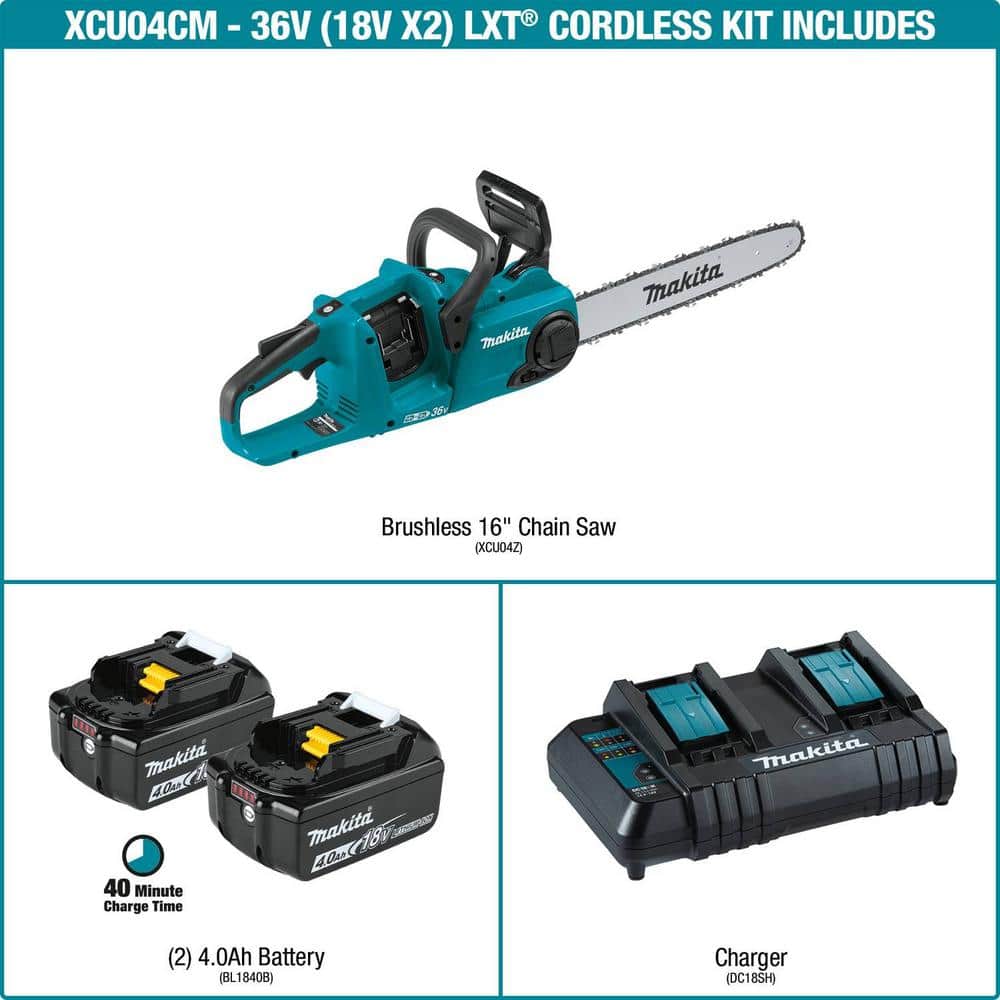 Makita 18-Volt X2 (36V) LXT Lithium-Ion Brushless Cordless 16 in. Electric Chain Saw Kit (4.0Ah)