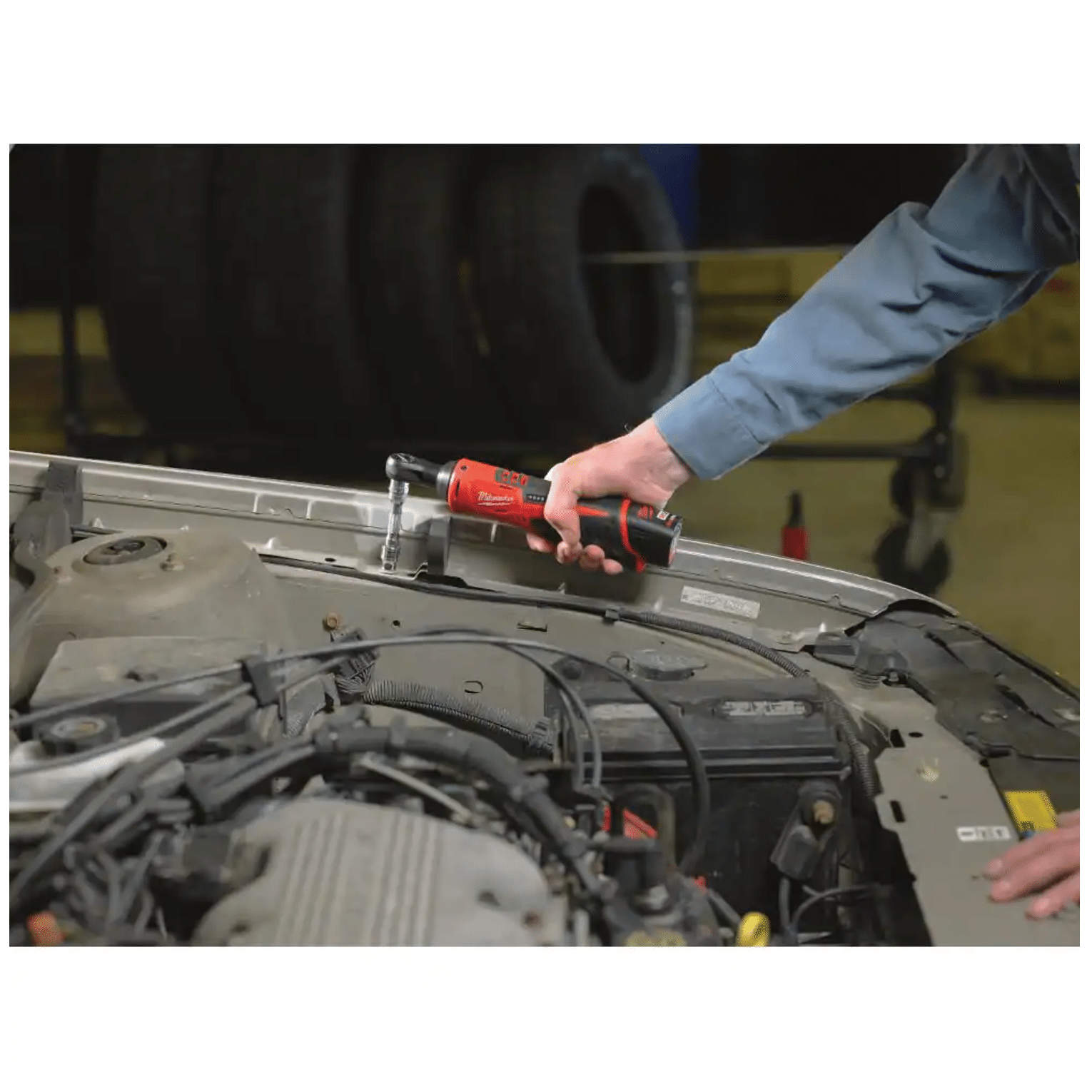 Milwaukee M12 12-Volt Lithium-Ion Cordless 3/8 in. Ratchet Kit with One 1.5 Ah Battery. Charger & Tool Bag (2457-21)