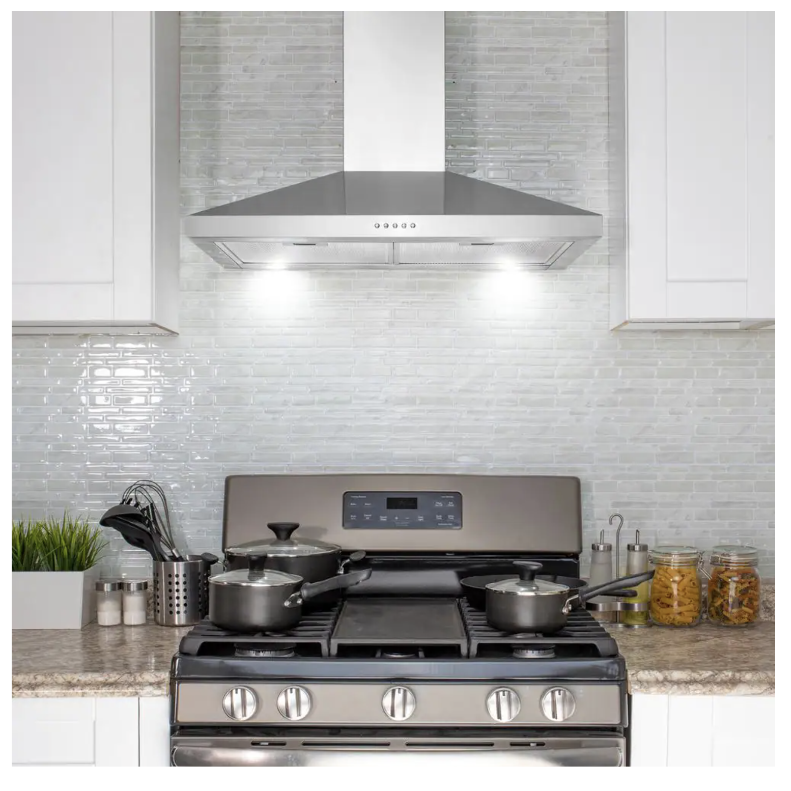 Golden Vantage RH0472 30 in. 217CFM Convertible Kitchen Wall Mount Range Hood in Stainless Steel with Push Control. LEDs & Carbon Filters
