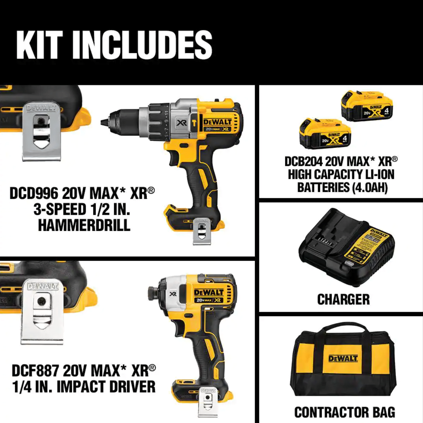 Dewalt 20V Max XR Cordless Brushless Hammer Drill/Impact Combo Kit (2-Tool) with (2) 20-Volt 4.0Ah Batteries & Charger (DCK299M2)