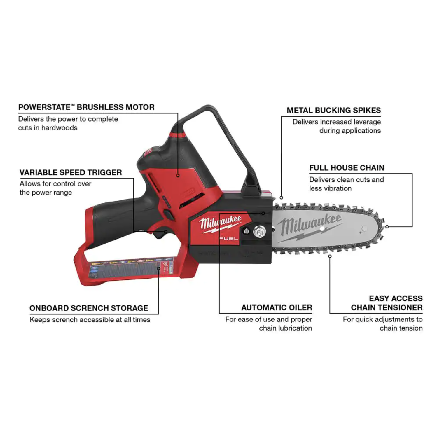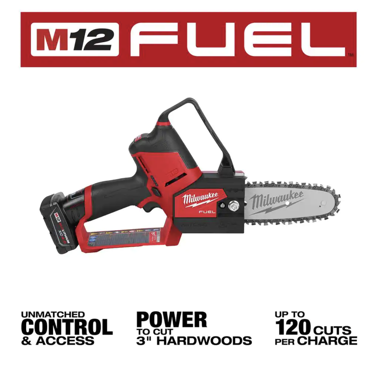 Milwaukee M12 FUEL 12-Volt Lithium-Ion Brushless Cordless 6 in. HATCHET Chainsaw Kit with 6.0 Ah and 4.0 Ah Battery. Charger (2527-21-48-11-2460)