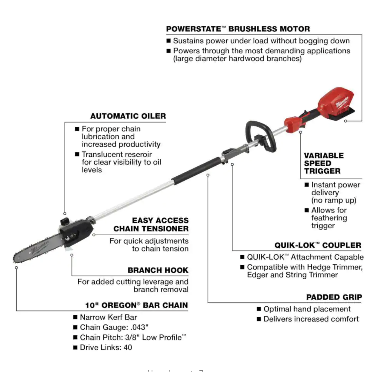 Milwaukee M18 Fuel 10 in. 18-Volt Lithium-Ion Brushless Cordless Pole Saw with Attachment Capability. Tool-Only (2825-20PS)