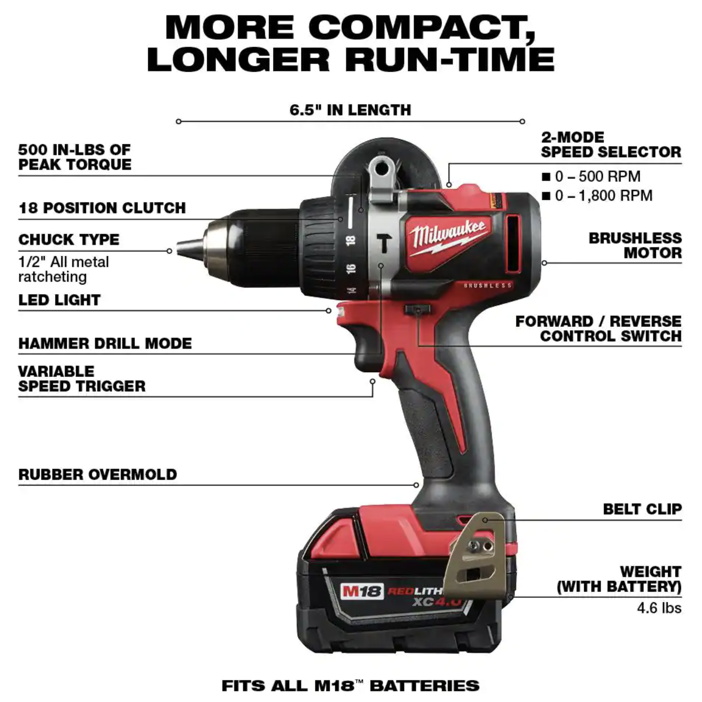 Milwaukee M18 18V Lithium-Ion Brushless Cordless Hammer Drill and Circular Saw Combo Kit (2-Tool) with Two 4.0 Ah Batteries (2992-22)