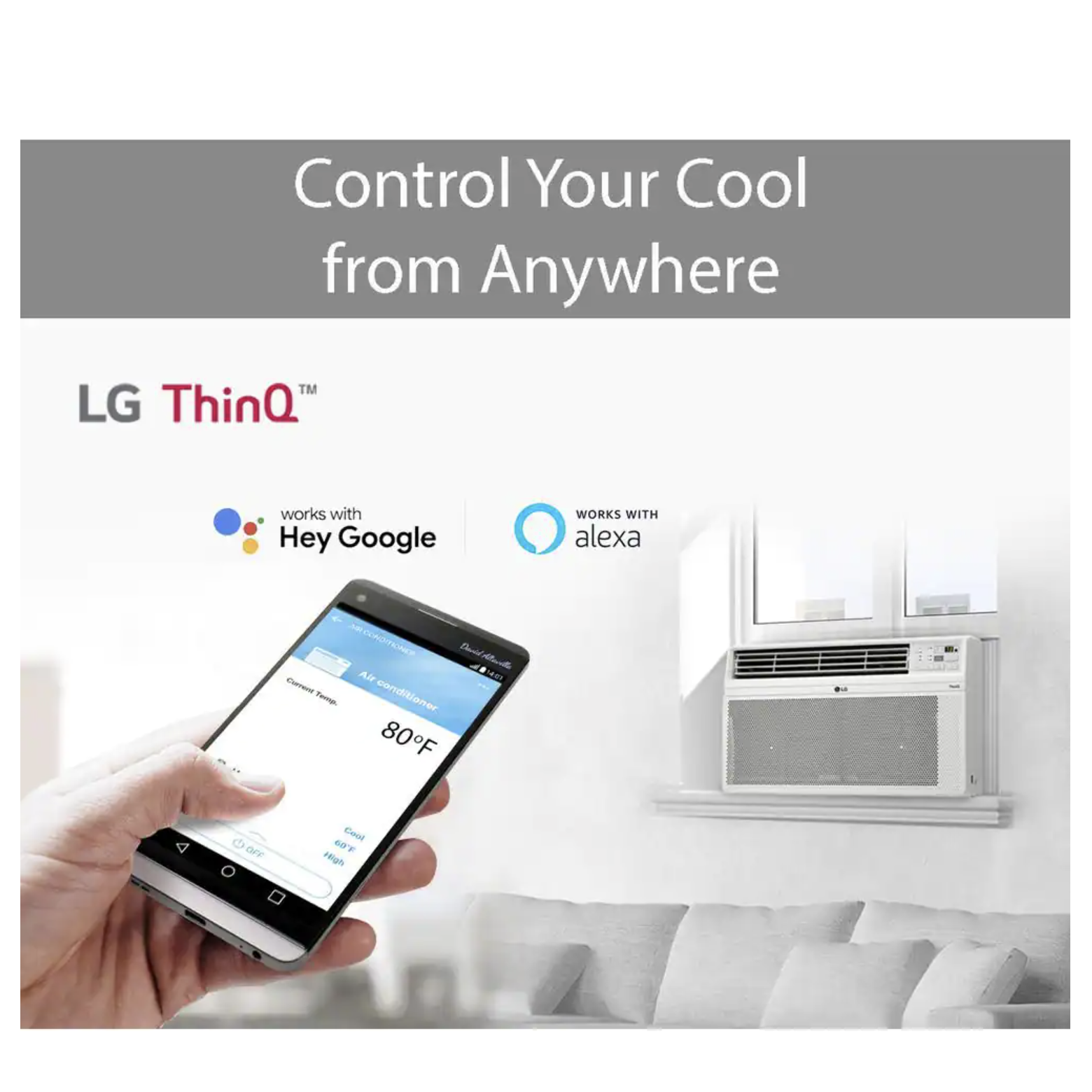 LG 8.000 BTU 115-Volt Window Air Conditioner. Cools 350 Sq. Ft. with Energy Star and Remote. Wi-Fi Enabled (LW8017ERSM)