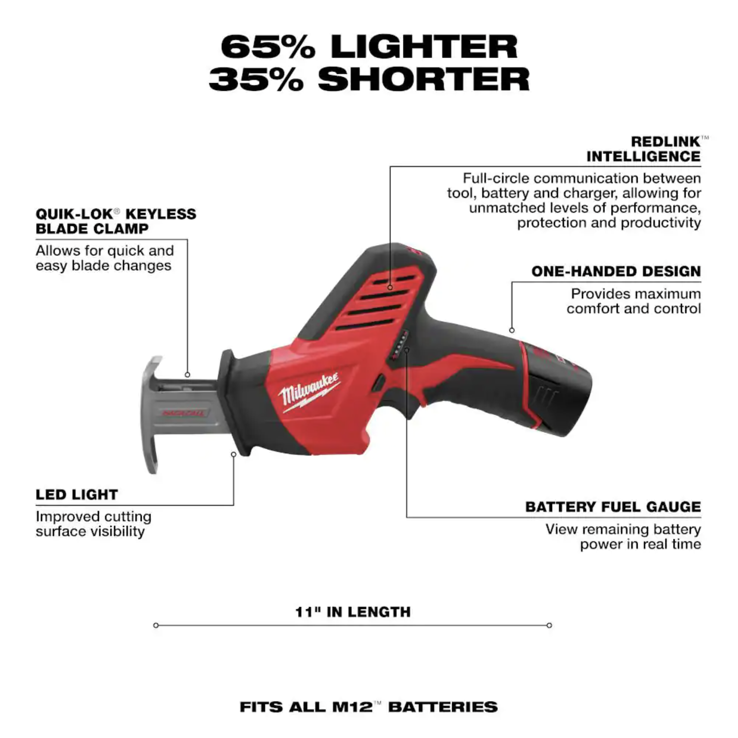 Milwaukee M12 12V Lithium-Ion Cordless Drill Driver/Impact Driver/Ratchet Combo Kit (3-Tool) w/ M12 Hackzall Reciprocating Saw