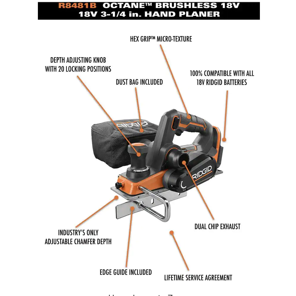 Ridgid 18V Brushless Cordless 2-Tool Combo Kit w/ 3-1/4 in. Hand Planer w/ Dust Bag and Compact Fixed Base Router (Tools Only)