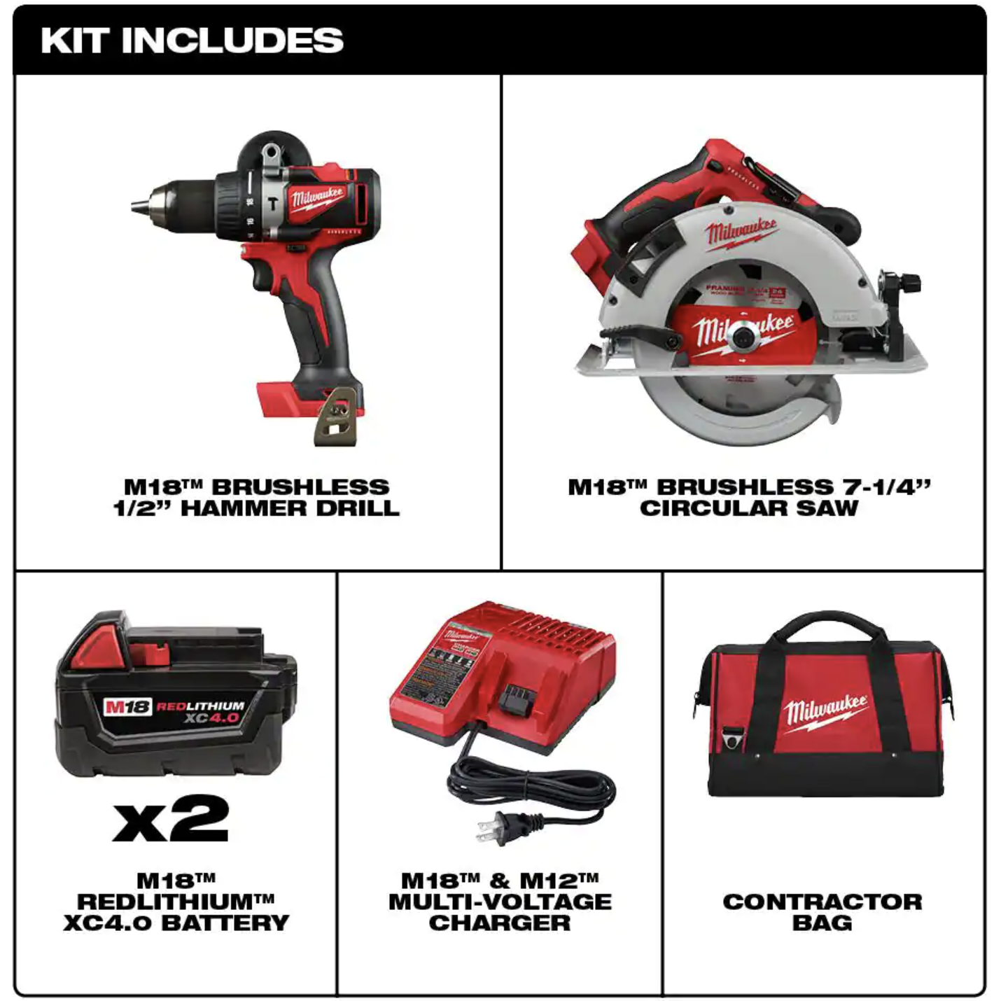 Ridgid 18V Cordless 4-Tool Combo Kit with (1) 4.0 Ah Battery. (1) 2.0 Ah Battery. Charger. and Bag