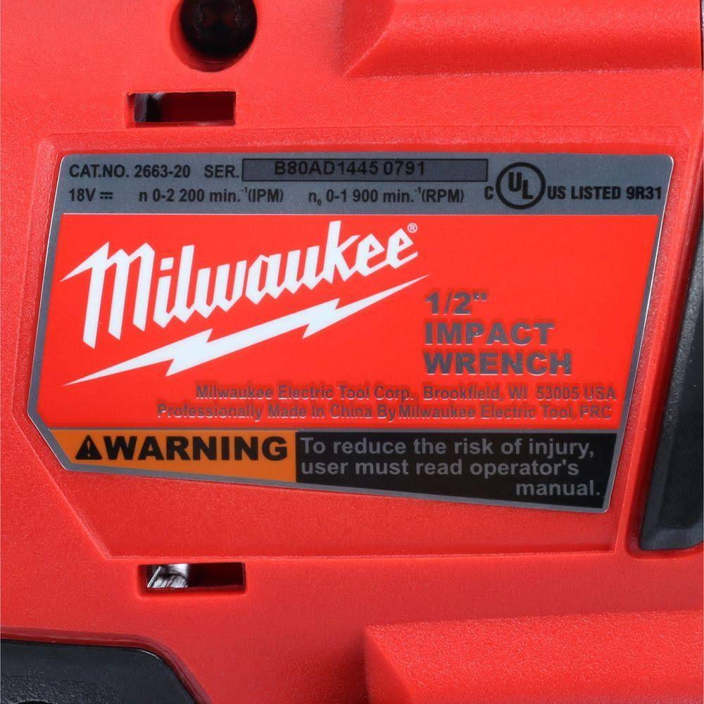 Bare-Tool Milwaukee 2663-20 18-Volt M18 1/2-Inch High Torque Impact Wrench with Friction Ring (Tool Only, No Battery)