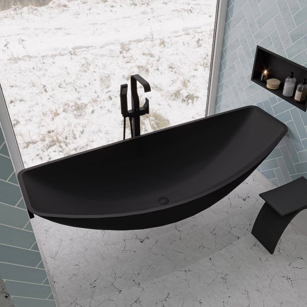 Alfi Brand HammockTub1-BM Black Matte 79" Acrylic Suspended Wall Mounted Hammock Bathtub