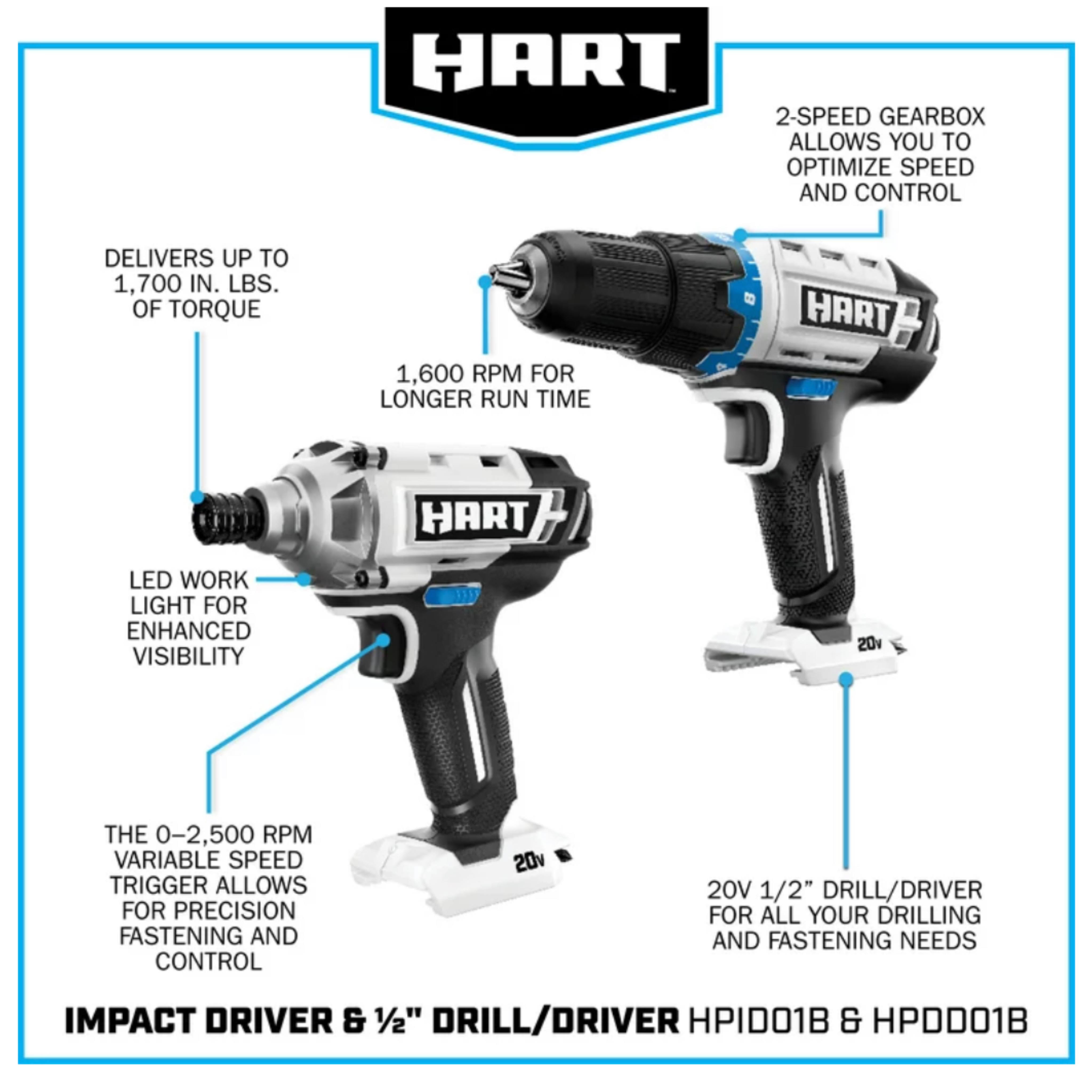 Hart 20-Volt Cordless 6-Tool Combo Kit 4.0Ah & 1.5Ah Lithium-Ion Batteries