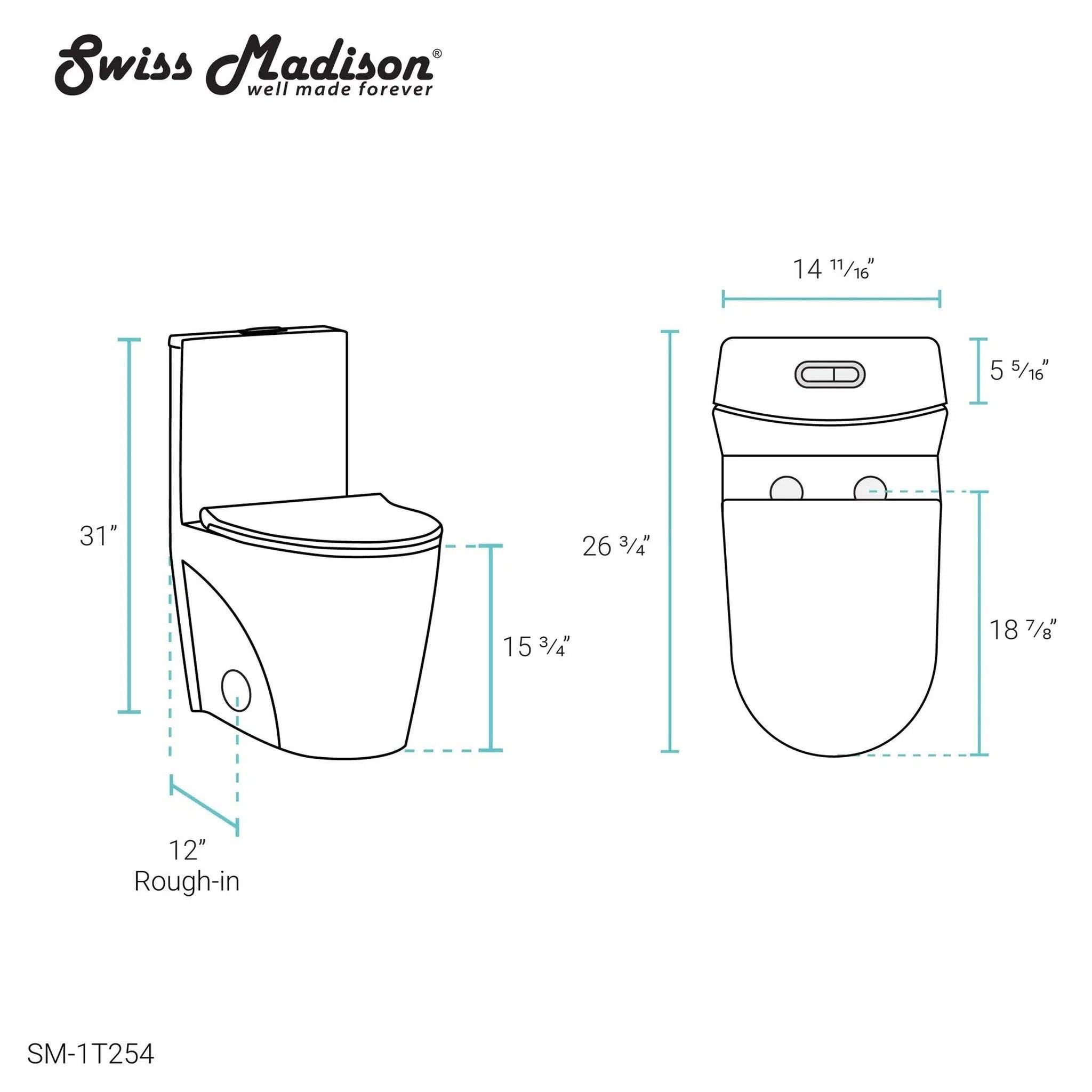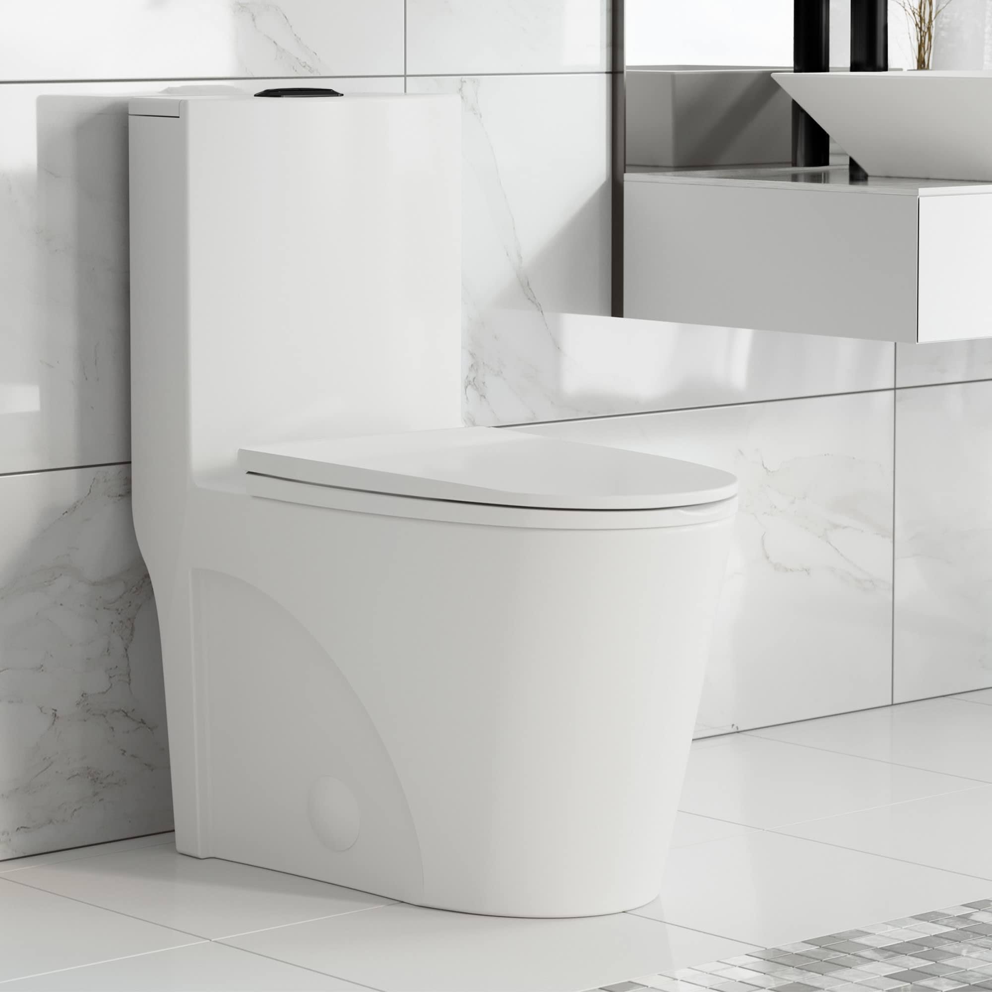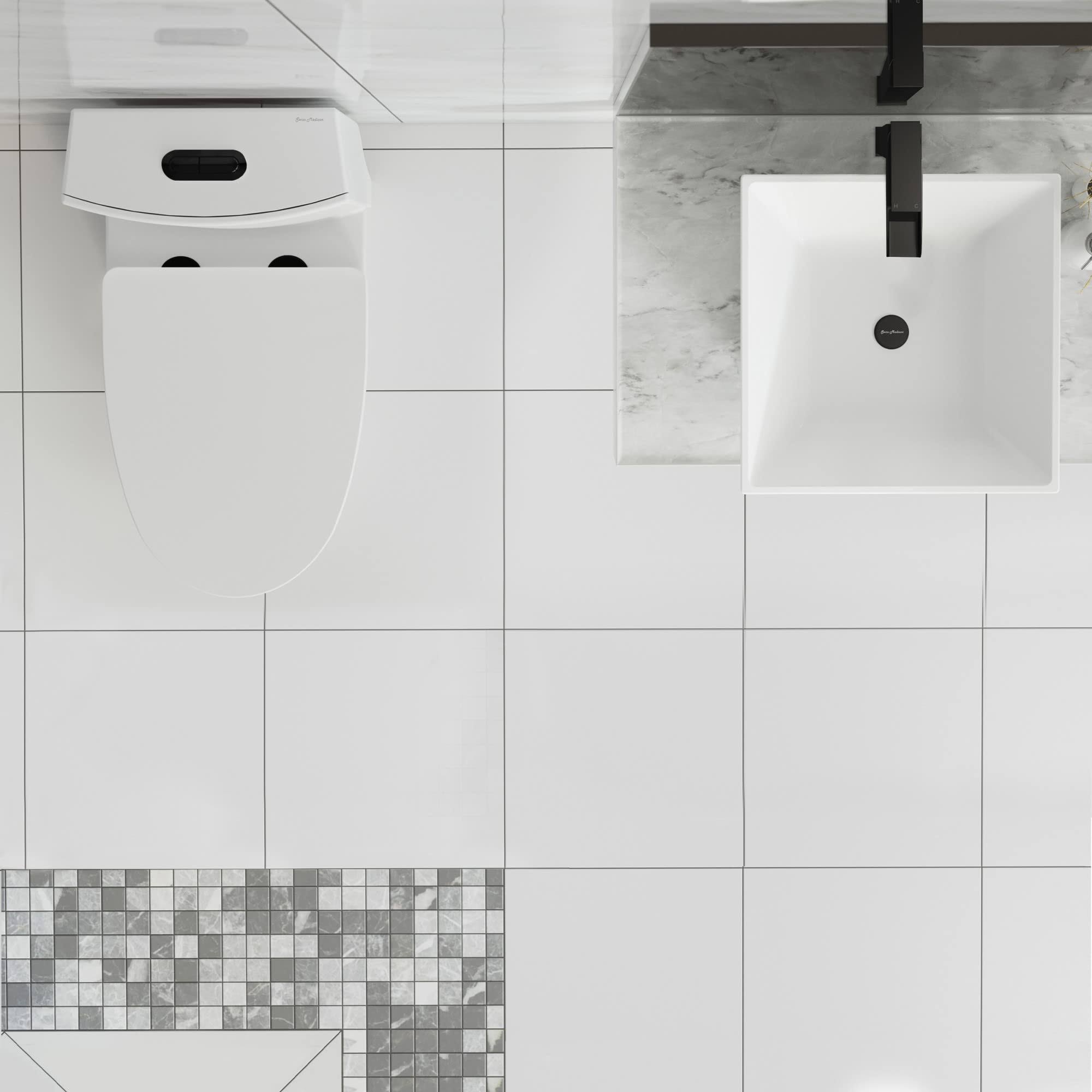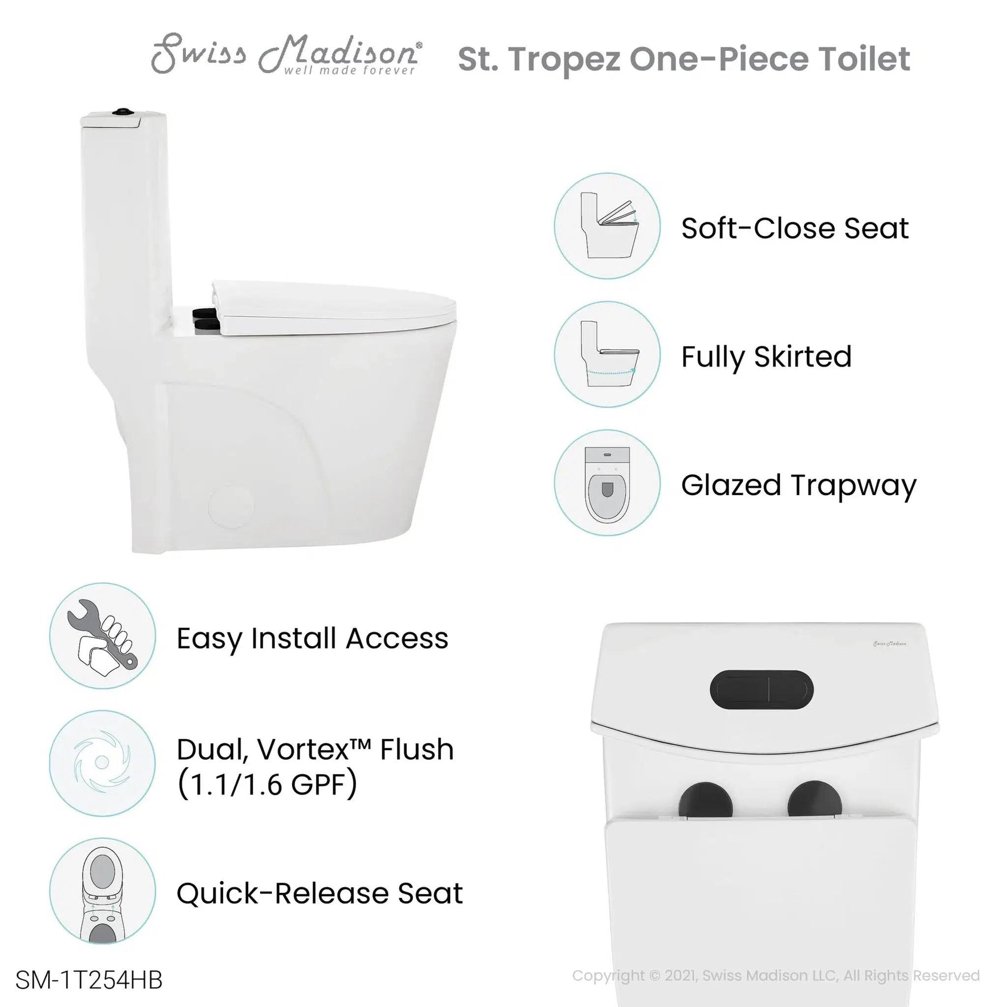 Swiss Madison St. Tropez One Piece Elongated Toilet Dual Vortex Flush, Black Hardware, White
