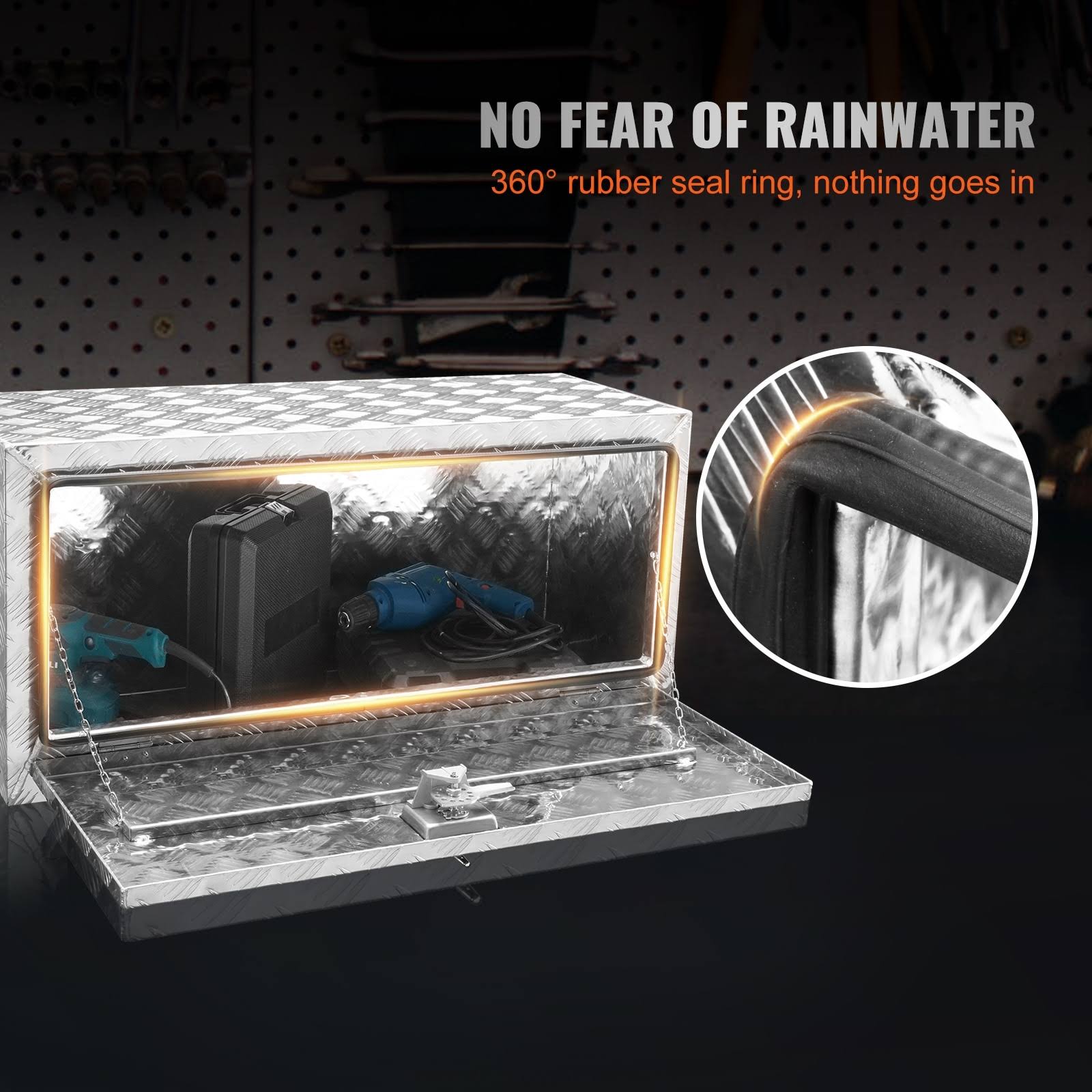 VEVOR Underbody Truck Box, 48"x17"x18" Pickup Storage Box, Heavy Duty Aluminum Diamond Plate Tool Box with Lock and Keys, Waterproof Trailer Storage