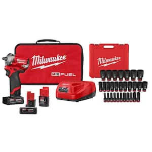 Milwaukee 2555-22-48-11-2420 M12 Fuel 12-Volt Lithium-Ion Cordless Stubby 1/2 in. Impact Wrench Kit with M12 2.0 Ah Compact Battery Pack