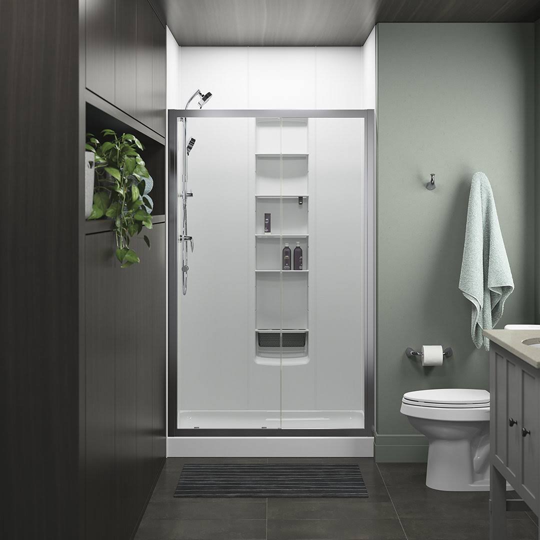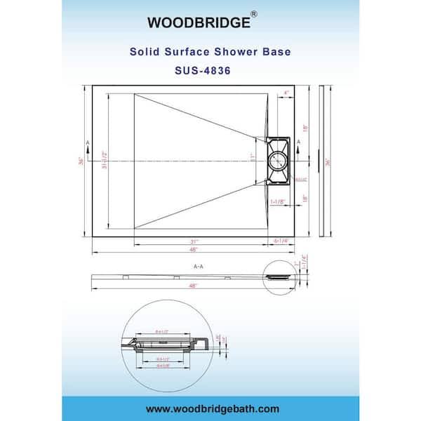 Woodbridge 48 in. L x 36 in. W Alcove Zero Threshold Shower Pan Base with Left/Right Drain in White,Low Profile,Wheel Chair Access
