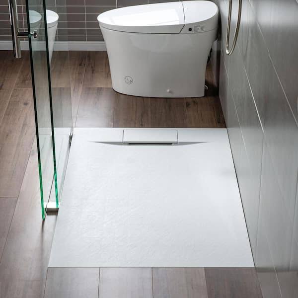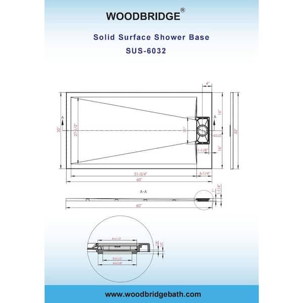 Woodbridge 60 in. L x 32 in. W Alcove Zero Threshold Shower Pan Base with Left/Right Drain in White,Low Profile,Wheel Chair Access
