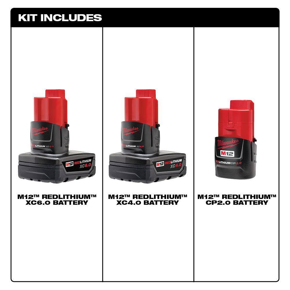 Milwaukee M12 12-Volt Lithium-Ion 6 Ah/4 Ah/2 Ah Extended Capacity Battery Packs (3-Batteries)