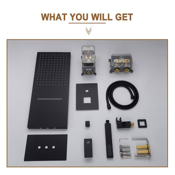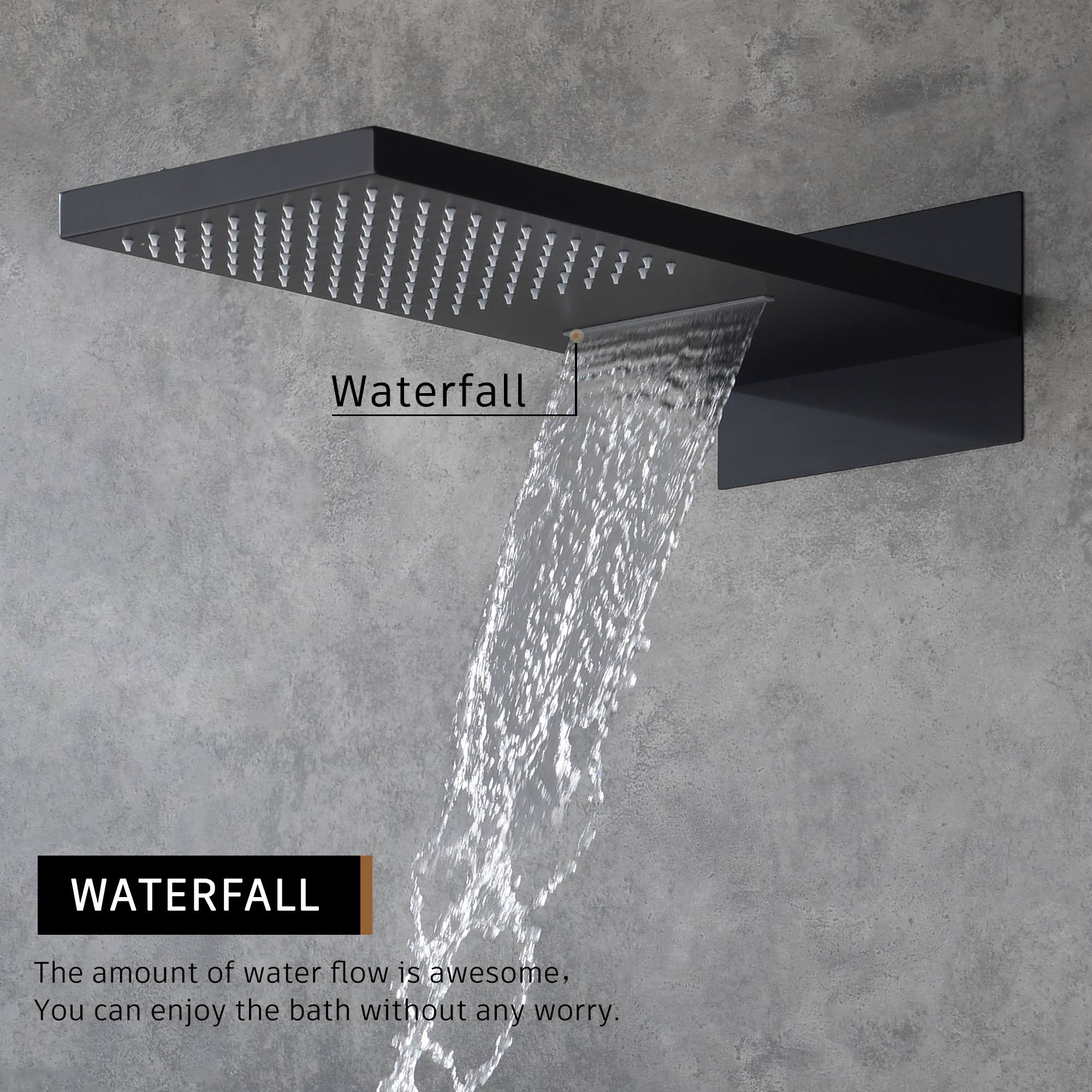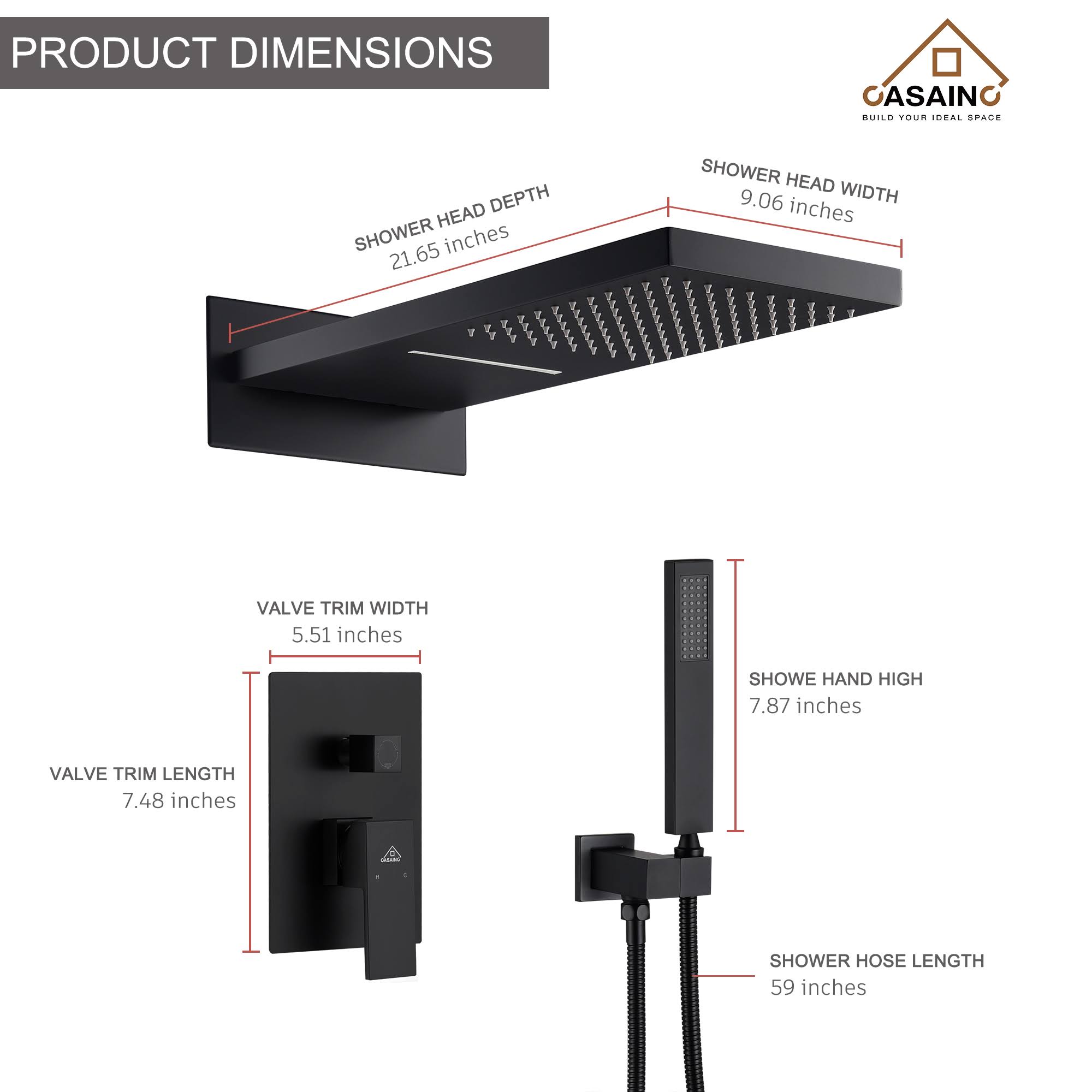 CASAINC M6630-A-22-MB Luxury Complete Shower System with Rough-In Valve Finish: Matte Black