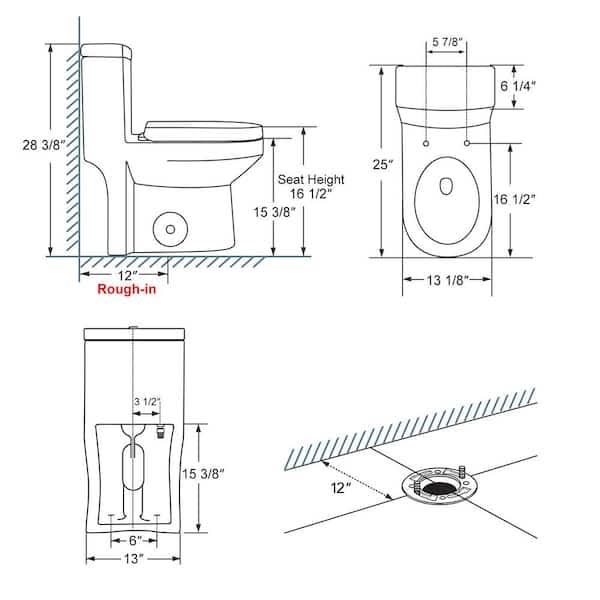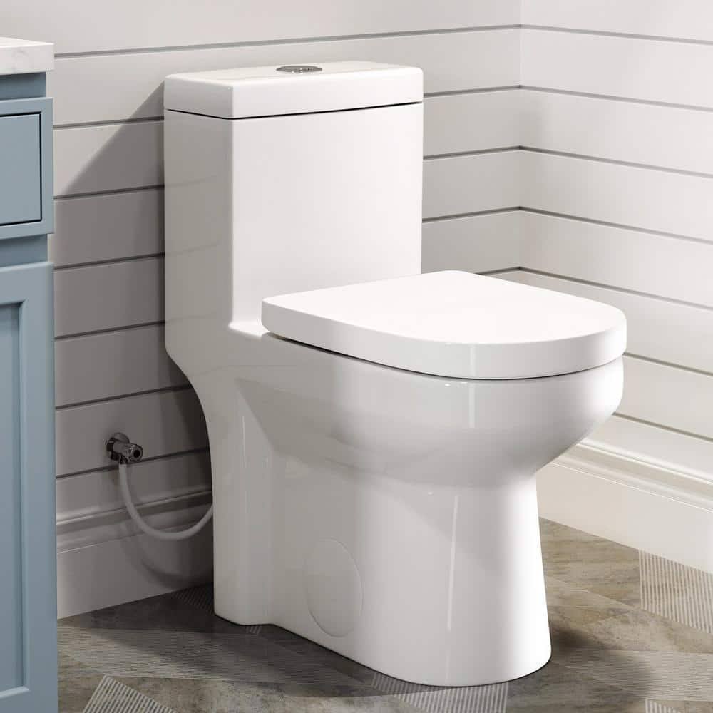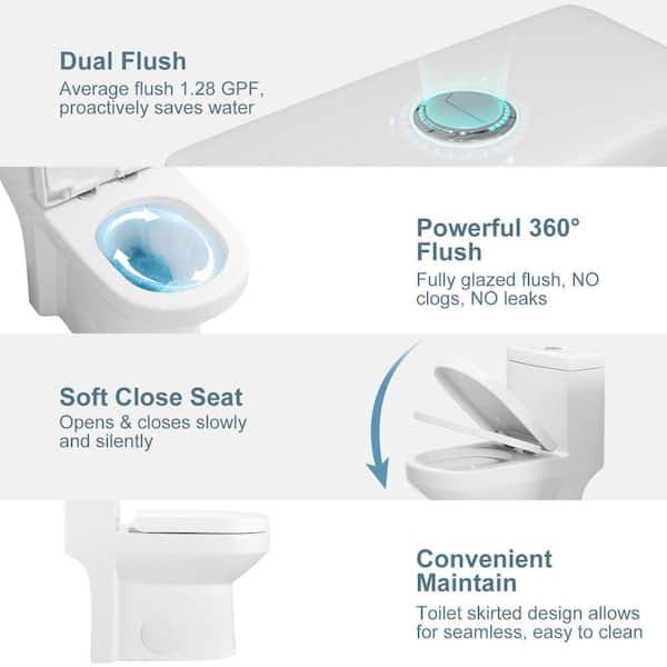 Hanikes One-Piece 1.1/1.6 GPF Dual Flush Round Toilet in White Soft Close Seat Included