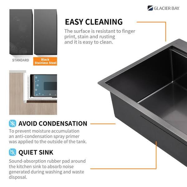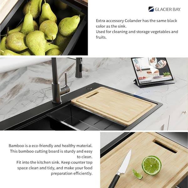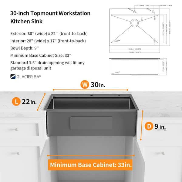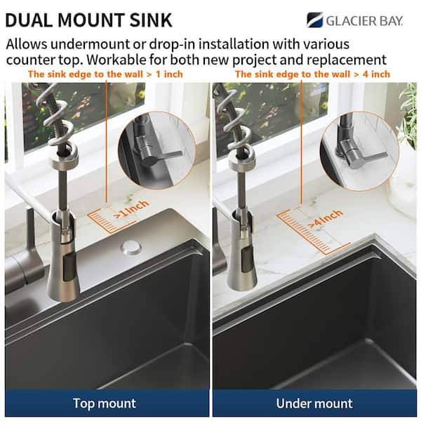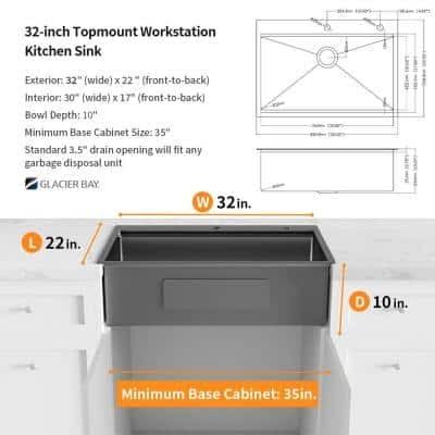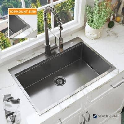 Glacier Bay Gunmetal Black Stainless Steel 32 in. 18 Gauge Single Bowl Dual Mount Workstation Kitchen Sink