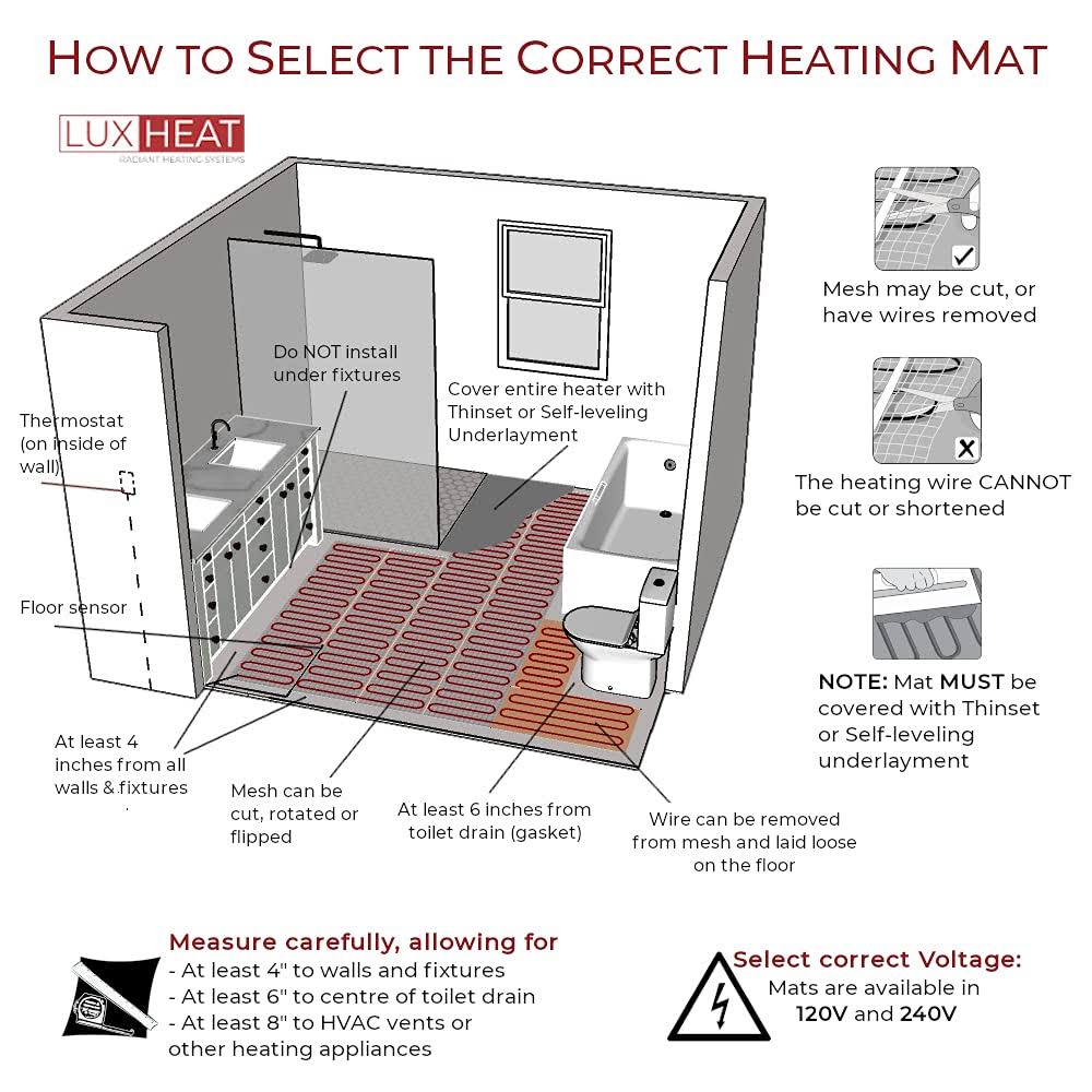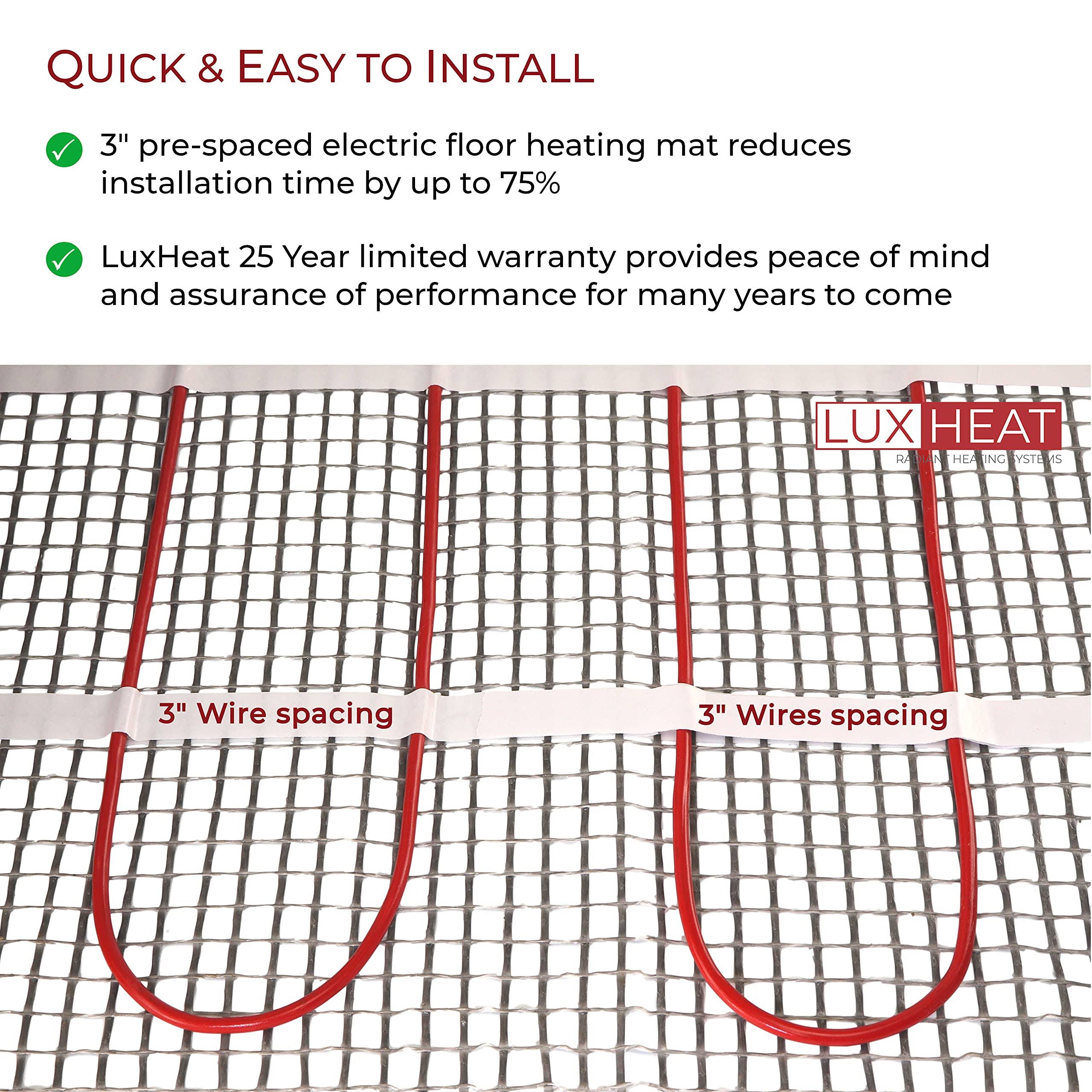 LuxHeat Radiant Electric Floor Heating Mat Kit with Programmable Thermostat & Installation Monitor 120V / 20 Sqft