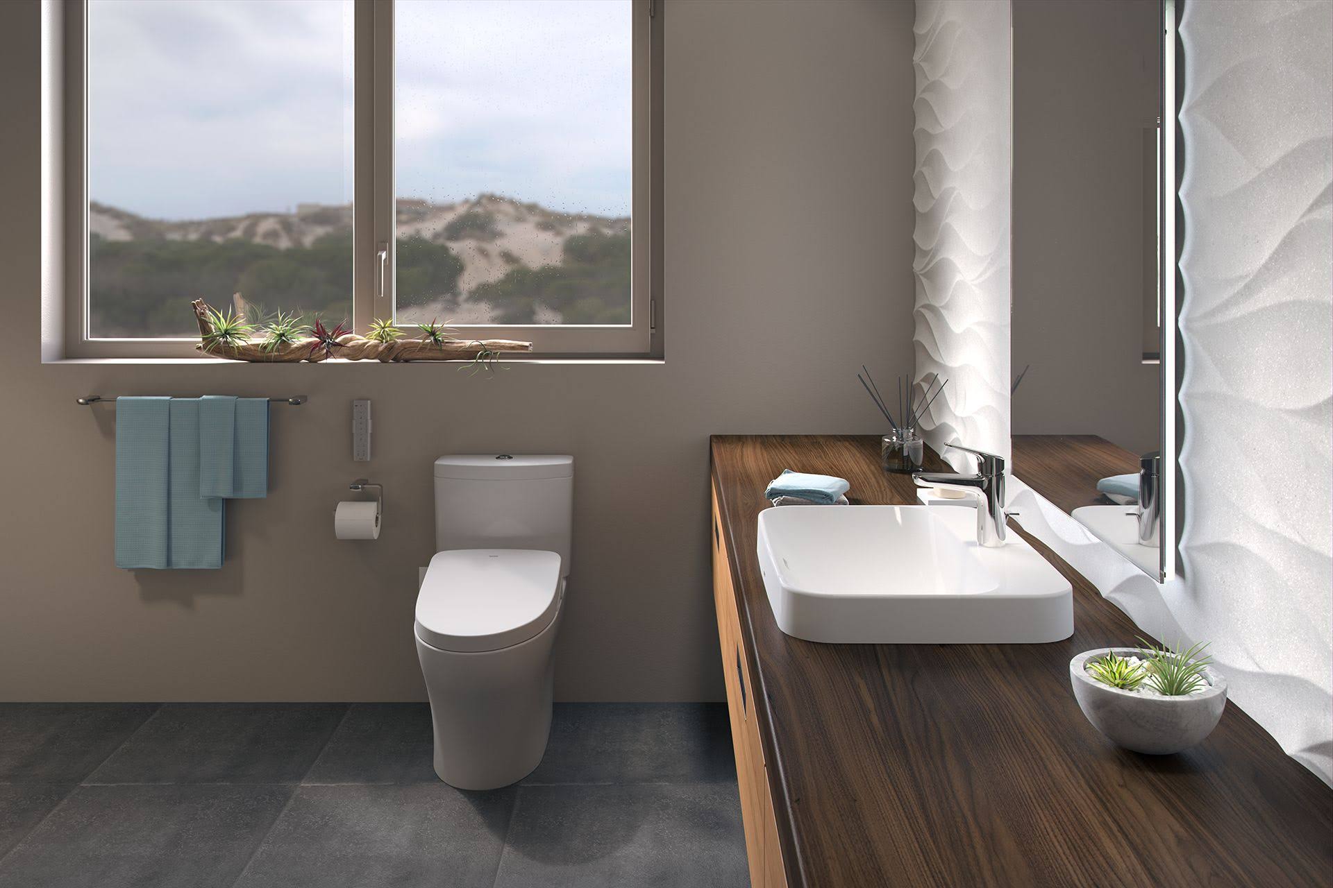 Toto MS446124CEMGN#12 Aquia IV Washlet+ Two-Piece Elongated Dual Flush 1.28 and 0.9 GPF Toilet with CeFiONtect , Sedona Beige