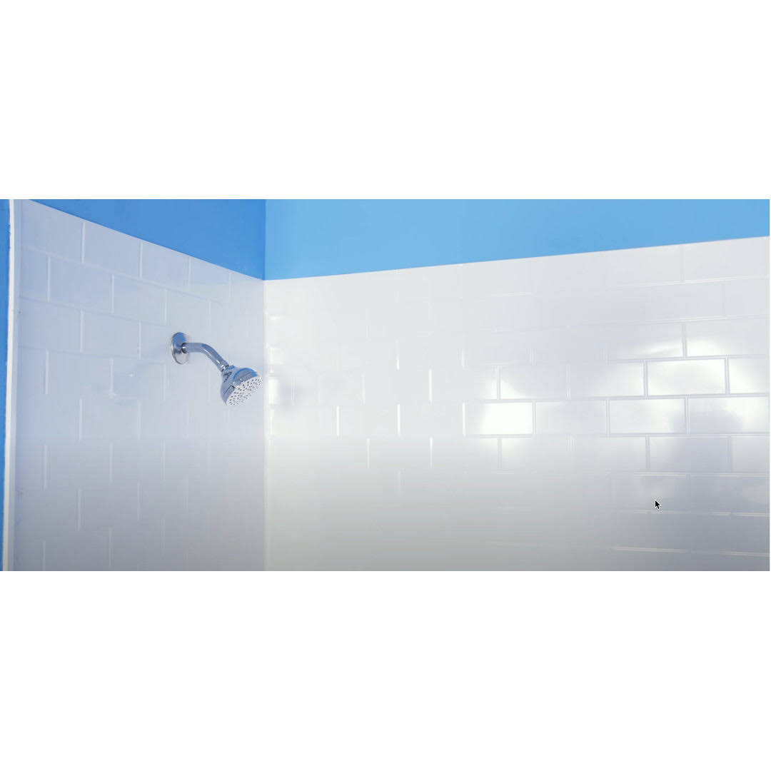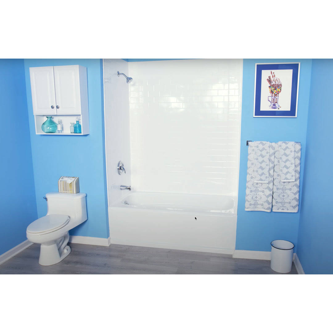 from Plain to Beautiful in Hours Subway Tile 60 in. W x 96 in. H x 42 in. D Three Piece Glue-up PVC Tub Surrounds Wall Panels in Gloss White