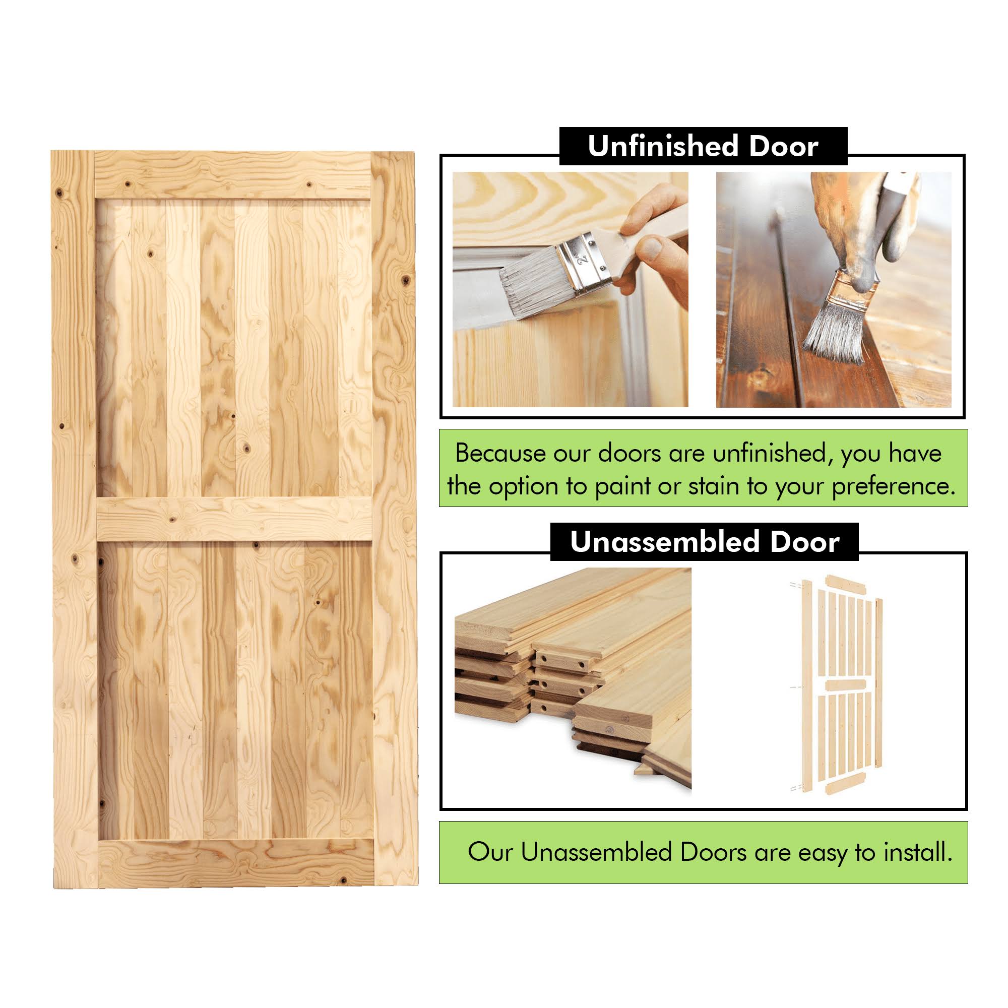 Homacer 60-in x 84-in Unfinished Pine Wood Single Barn Door