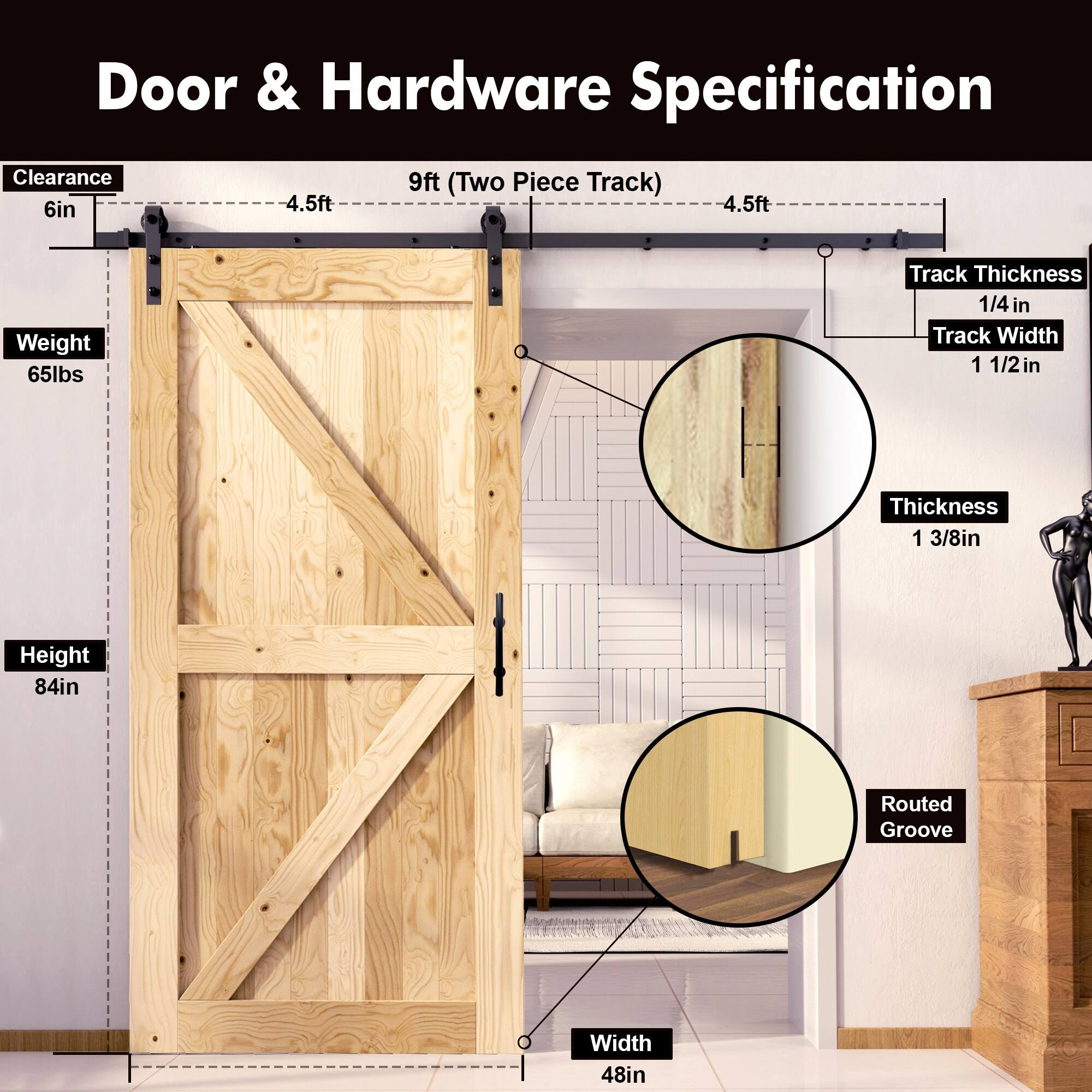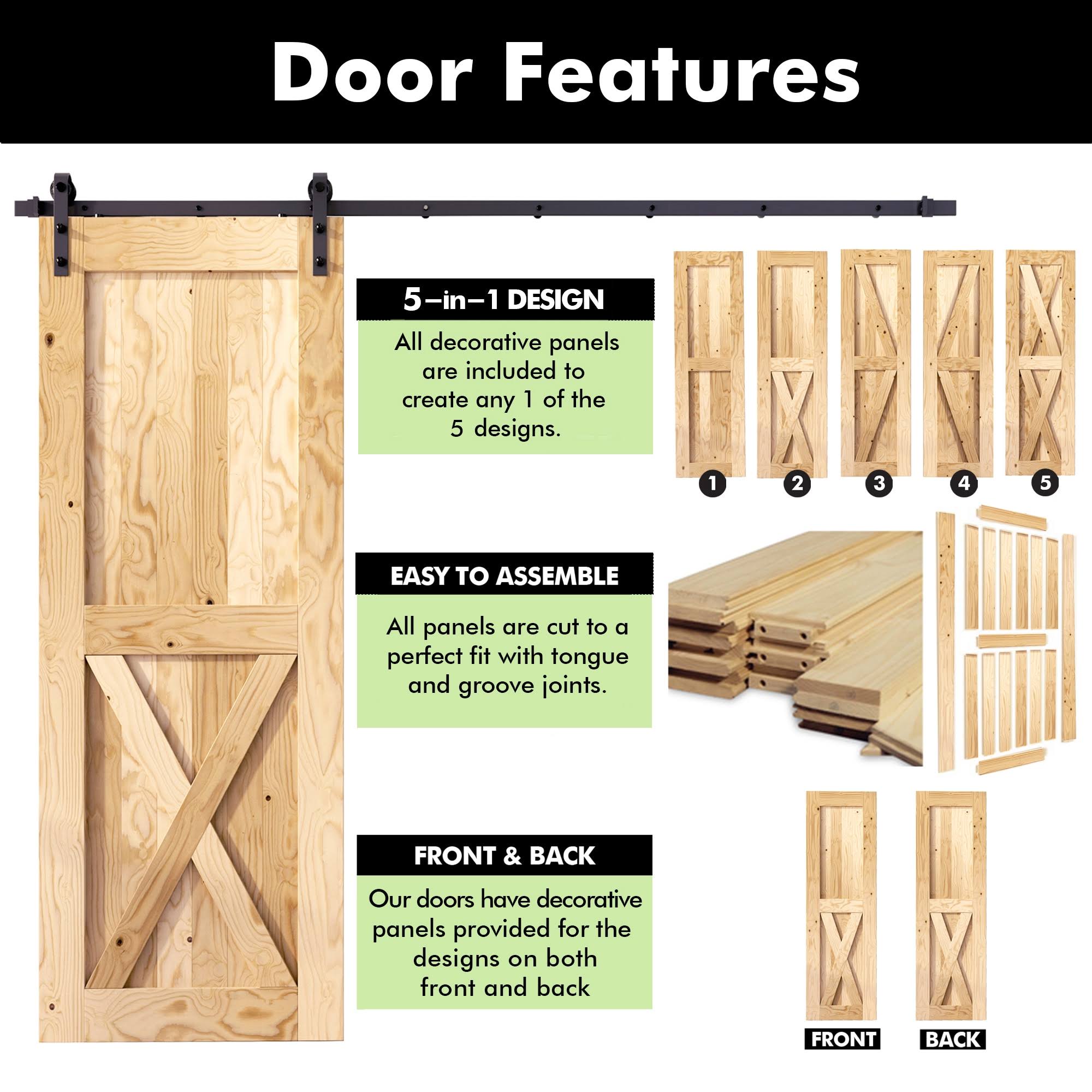 Homacer 40 in. x 84 in. 5-in-1 Design Unfinished Frame Solid Pine Wood Interior Sliding Barn Door with Hardware Kit, Non-Bypass, Unfinished/40x84