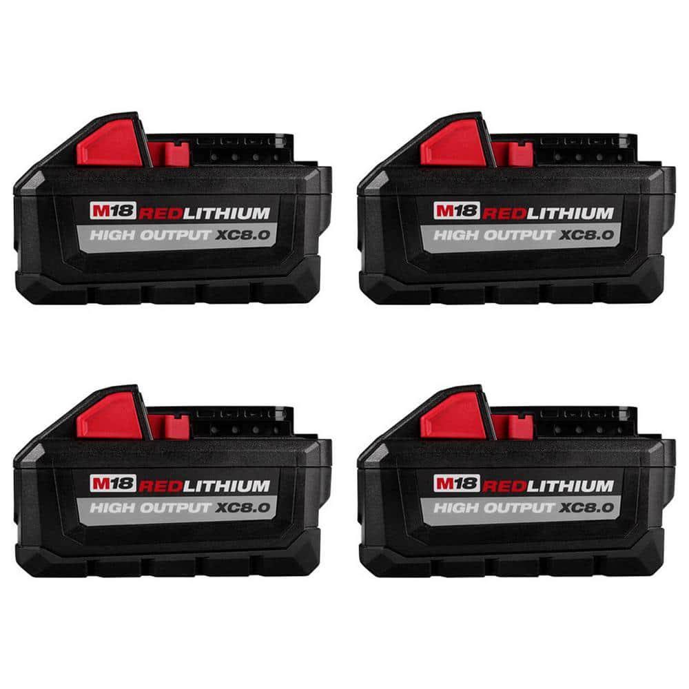 M18 18-Volt Lithium-Ion High Output XC 8.0 Ah Battery (4-Pack)