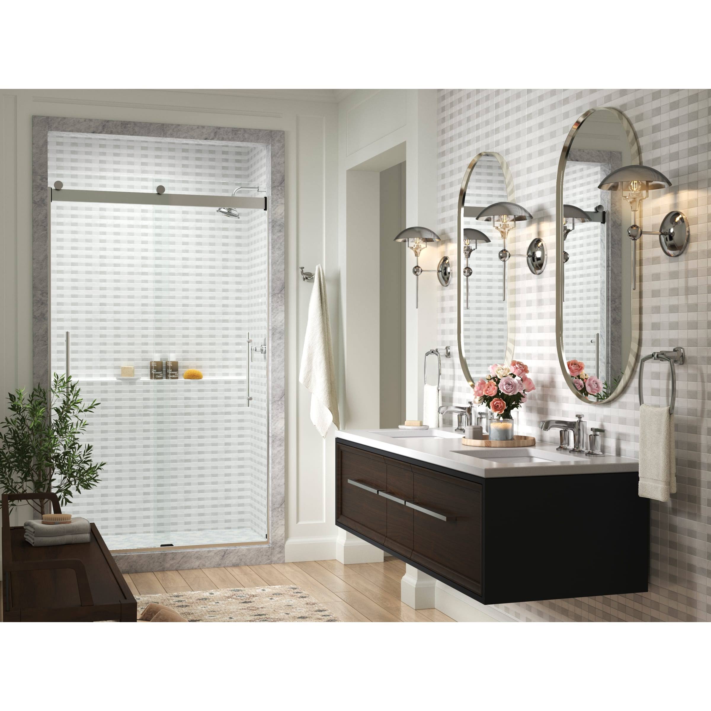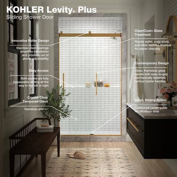 Kohler K-702423-L Levity Plus Frameless Sliding Shower Door, 77-9/16" H x 56-5/8- 59-5/8" W, with 5/16"-thick Crystal Clear Glass- Anodized Brushed