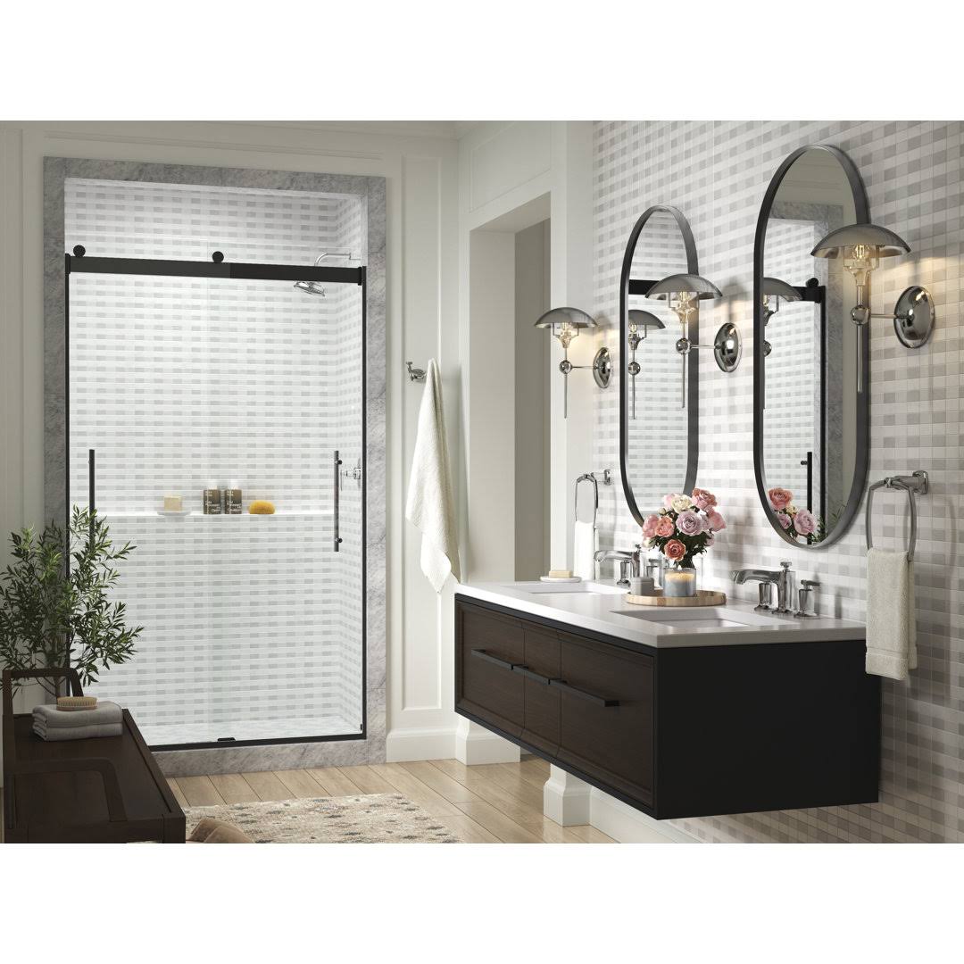 Kohler K-702423-L Levity Plus Frameless Sliding Shower Door, 77-9/16" H x 56-5/8- 59-5/8" W, with 5/16"-thick Crystal Clear Glass- Matte Black