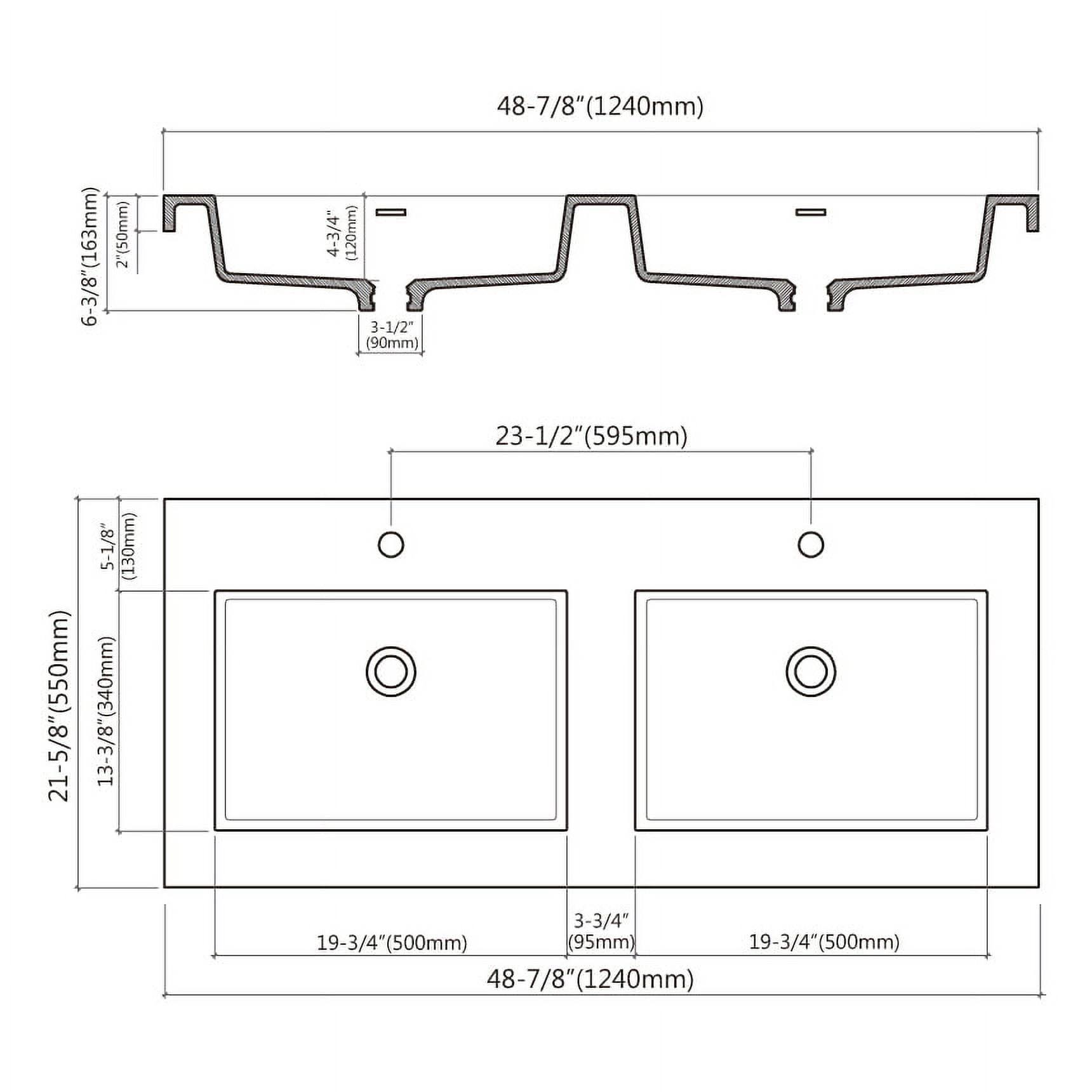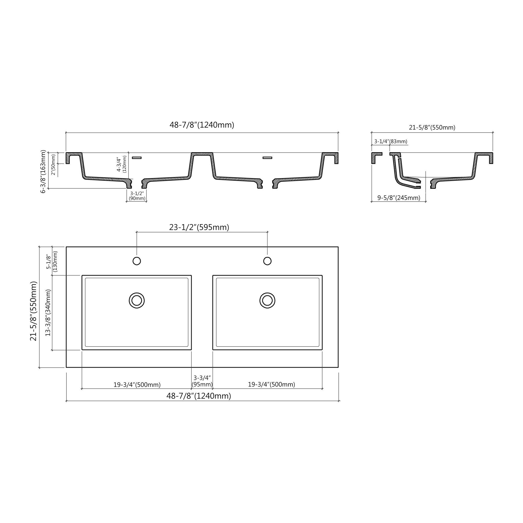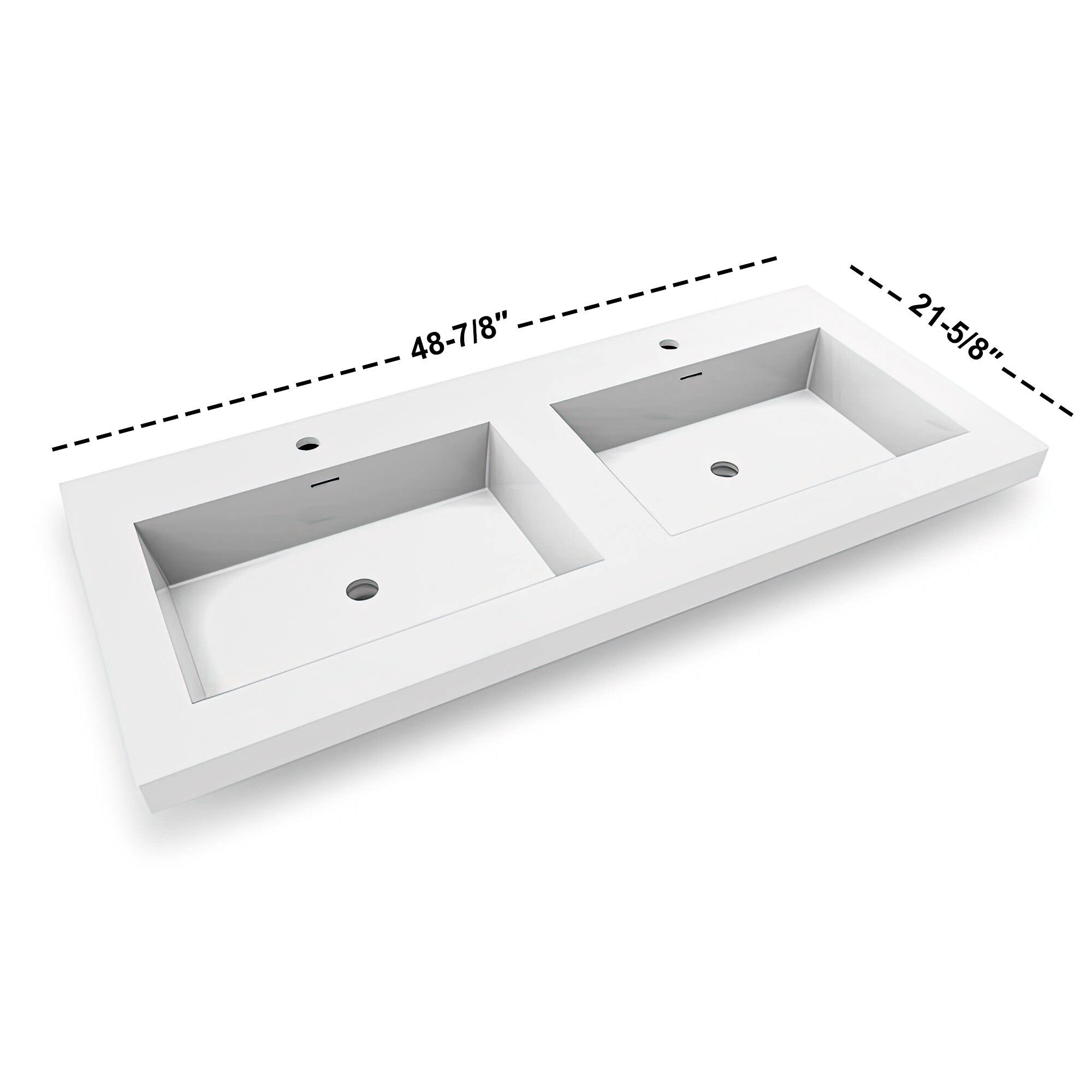 Dowell 22" FTB Resin Bathroom Vanity Basin- 49Wx22Dx6H 2 Sinks- White