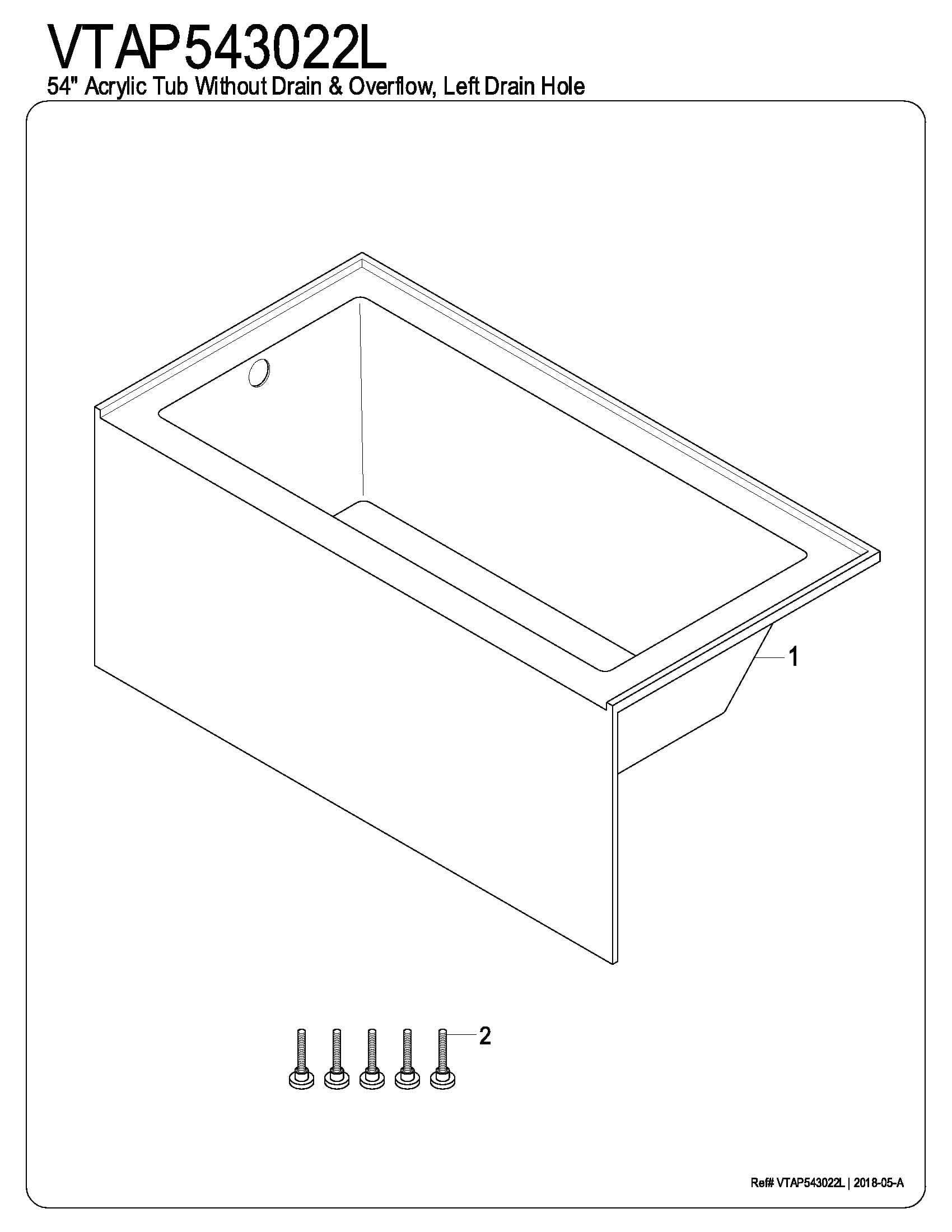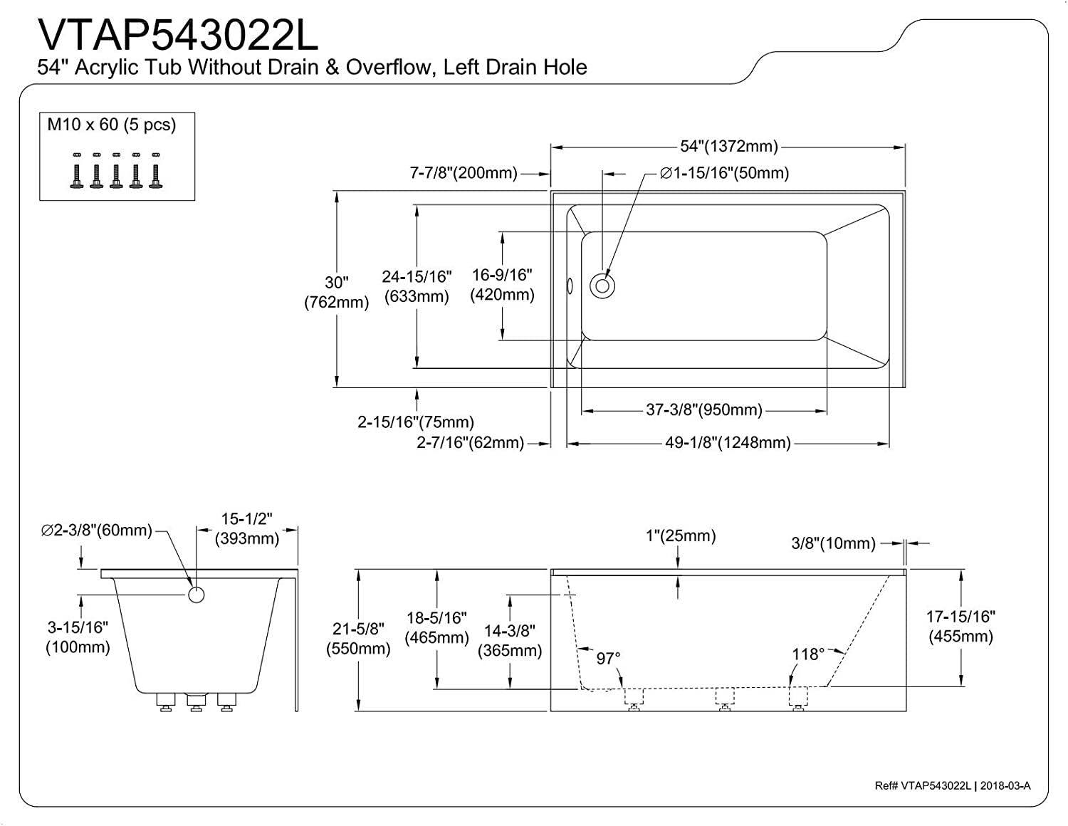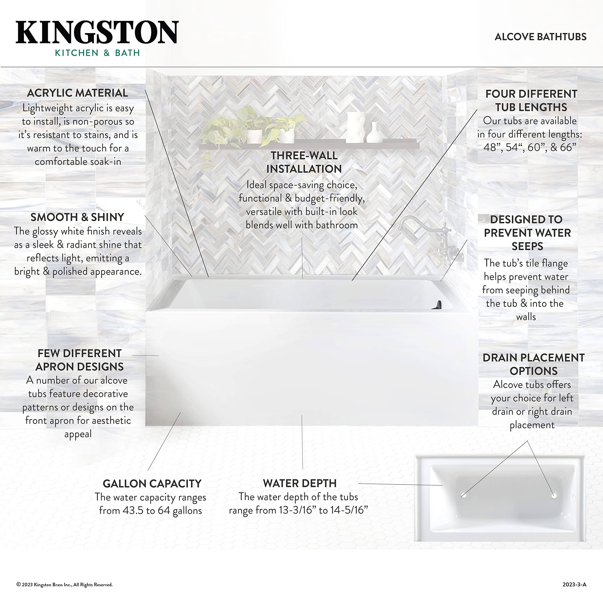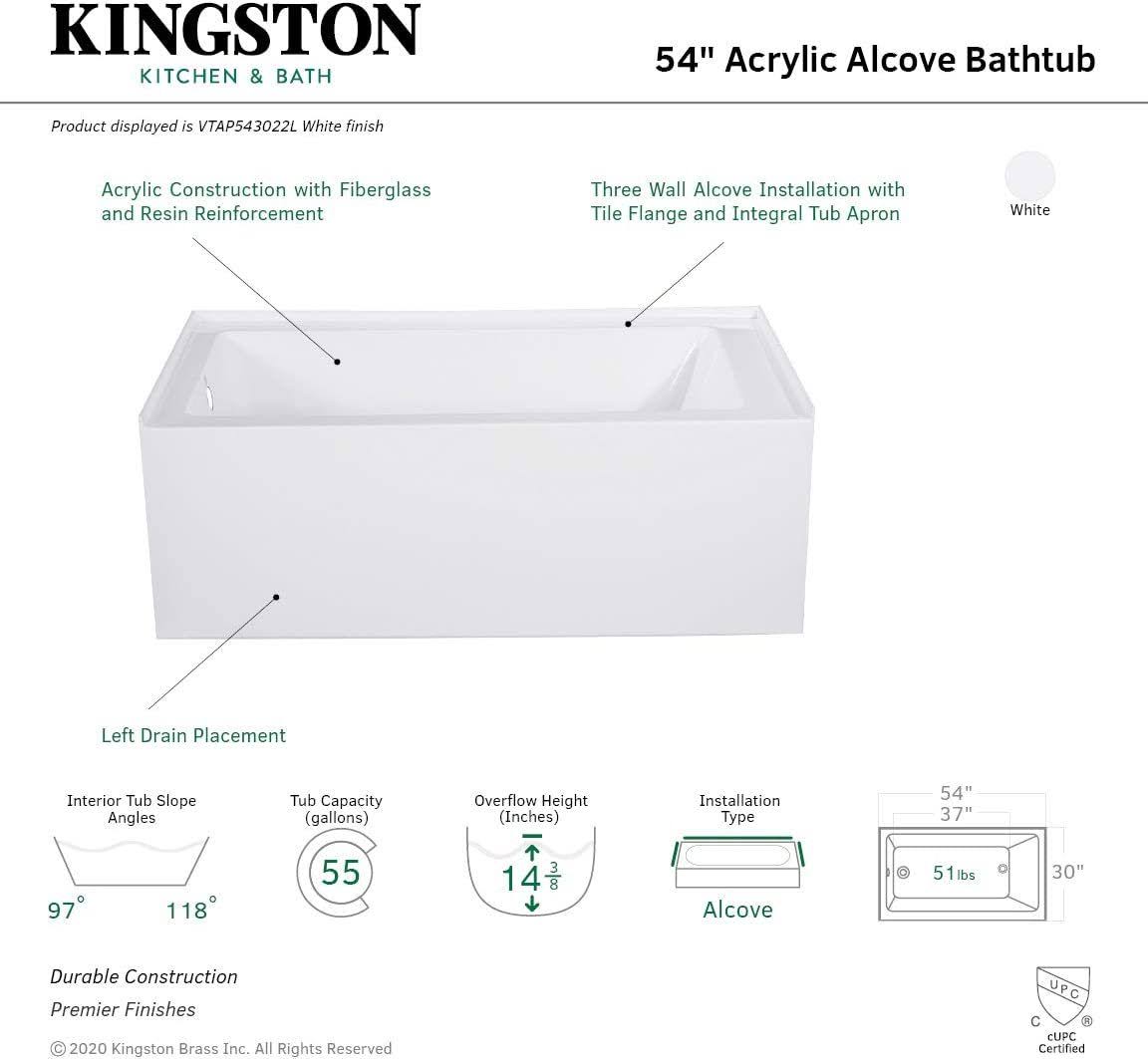 Aqua Eden 54-Inch Acrylic Alcove Tub with Left Hand Drain White- Kingston Brass- VTAP543022L