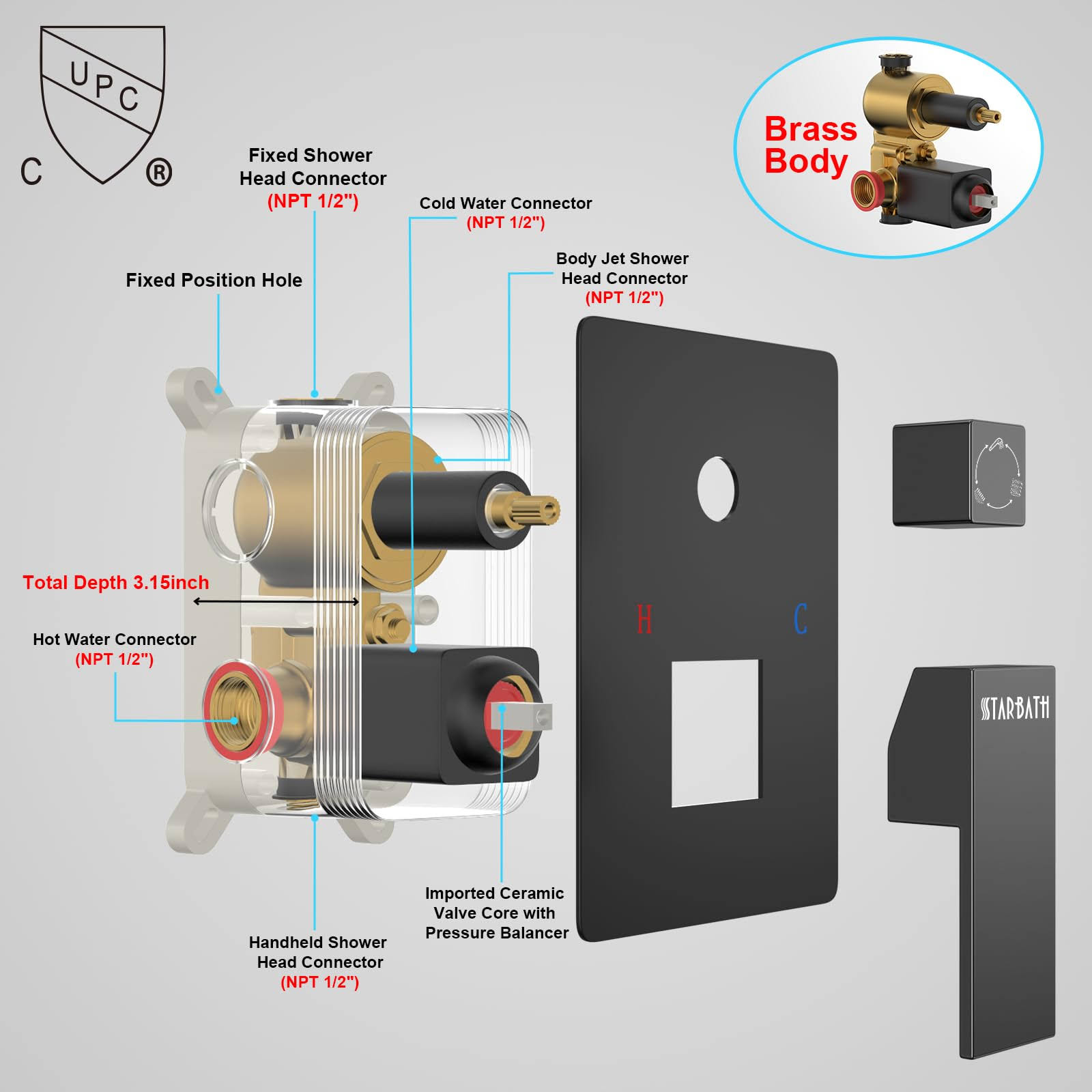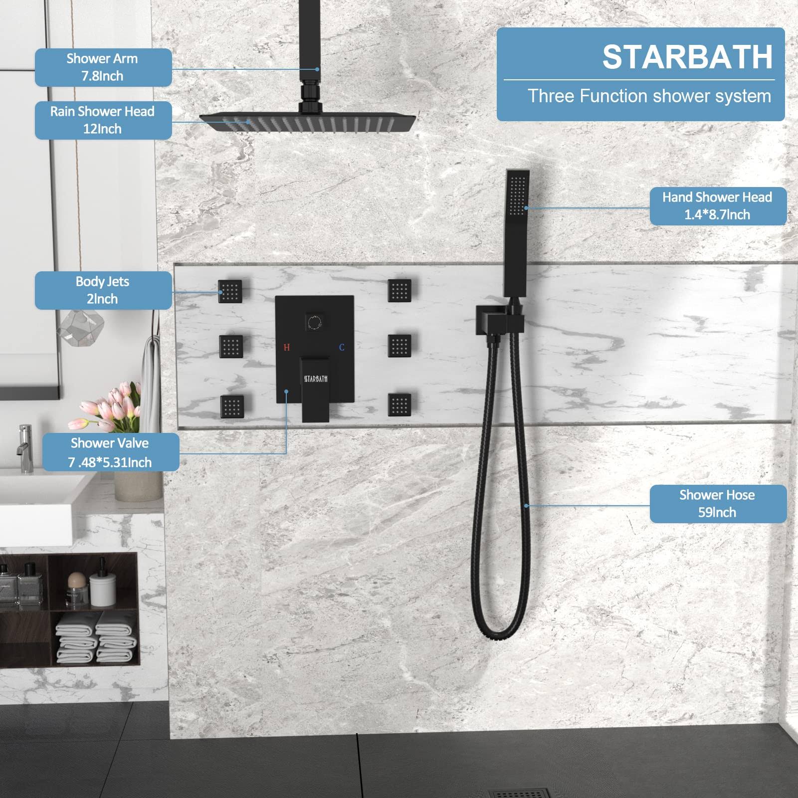 STARBATH Shower Jets System, 12 inch Ceiling Mounted Rainfall Shower Head with