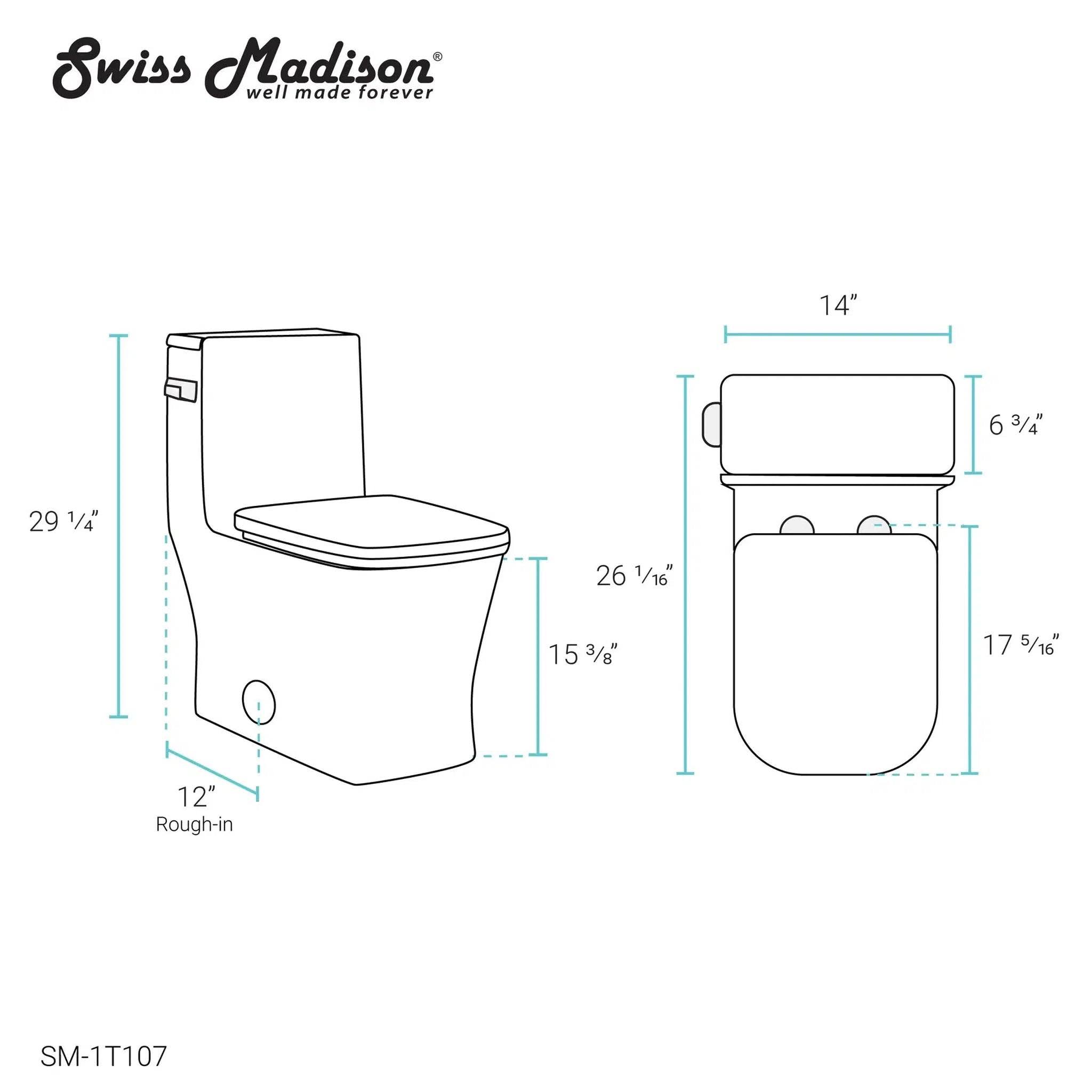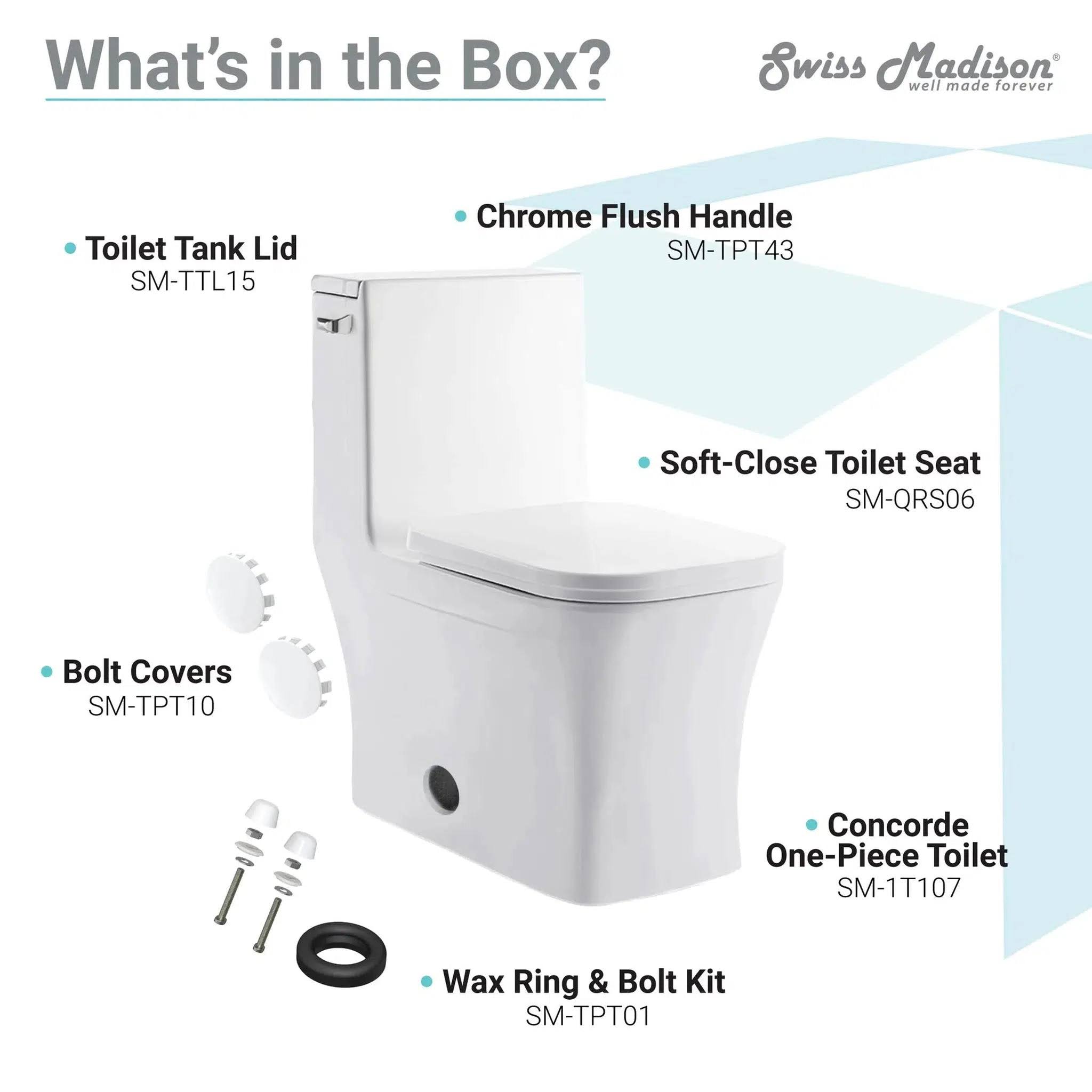 Swiss Madison Concorde One-Piece Square Left Side Flush Handle Toilet 1.28 GPF, White