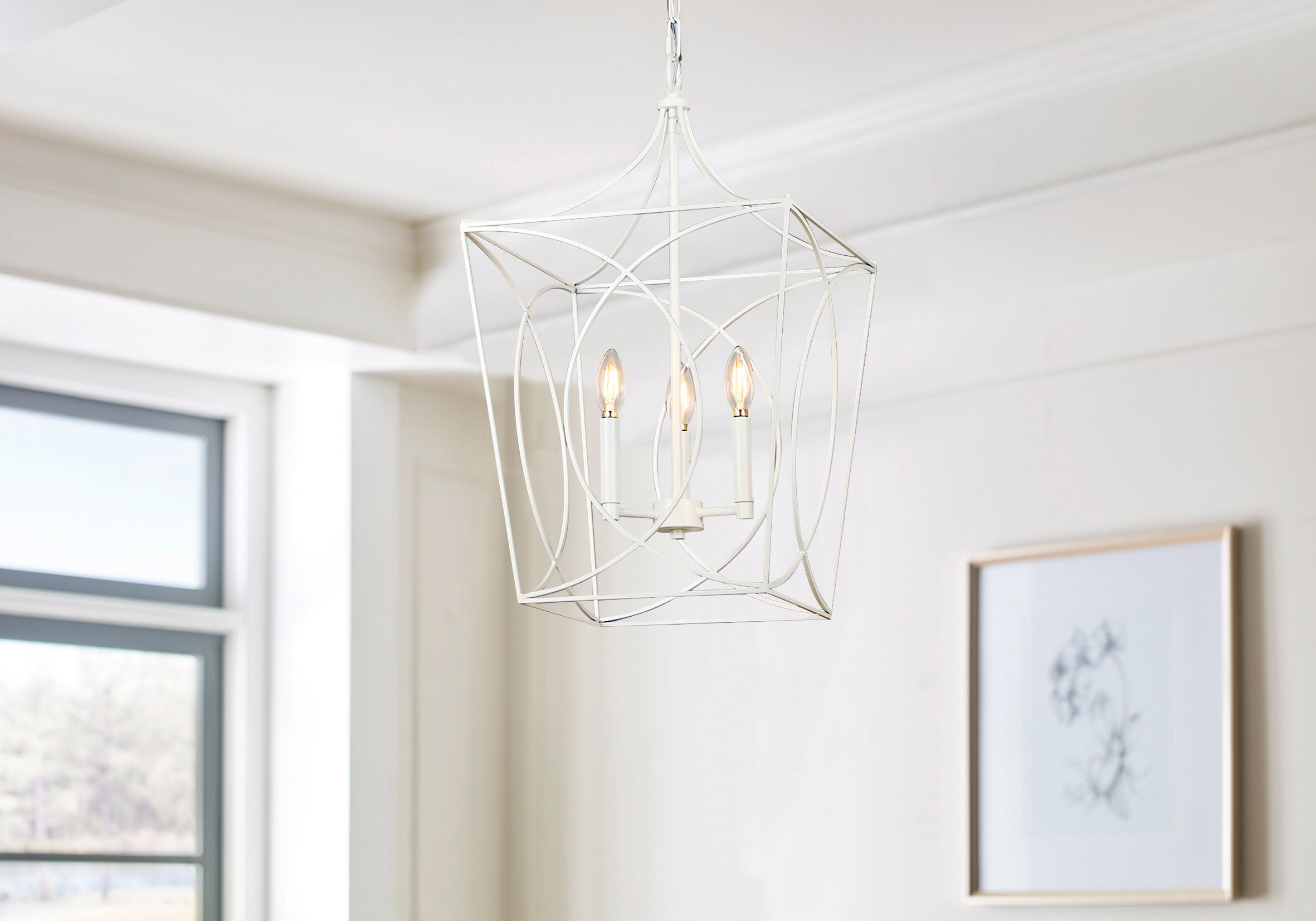 allen + roth Providence 3-Light Antique White Traditional Square Pendant Light