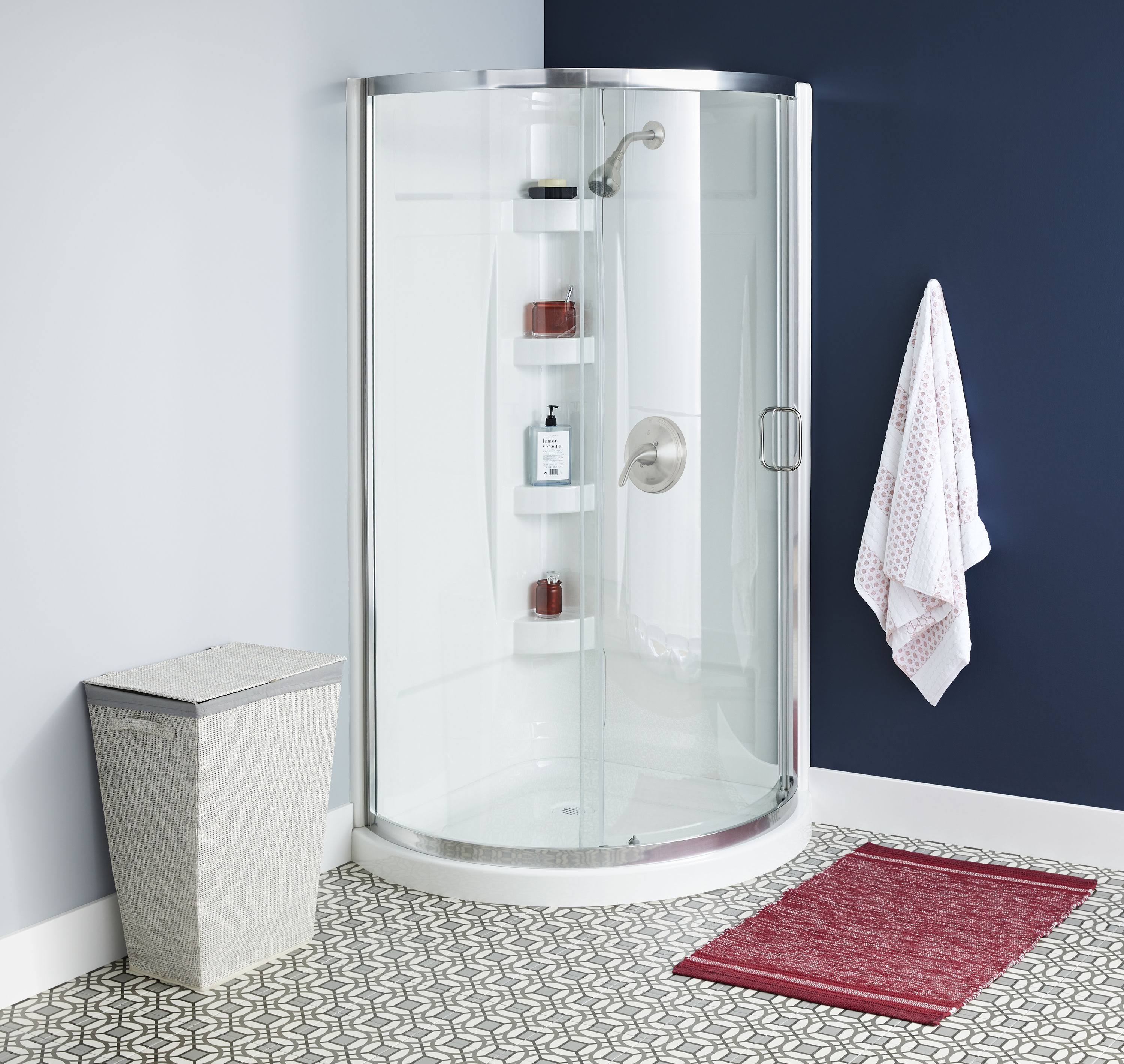 Maax Monroe White 38-in x 38-in x 76-in Base/Wall/Door Curved Corner Shower Kit (Off-center Drain) | 800025-900-084-000