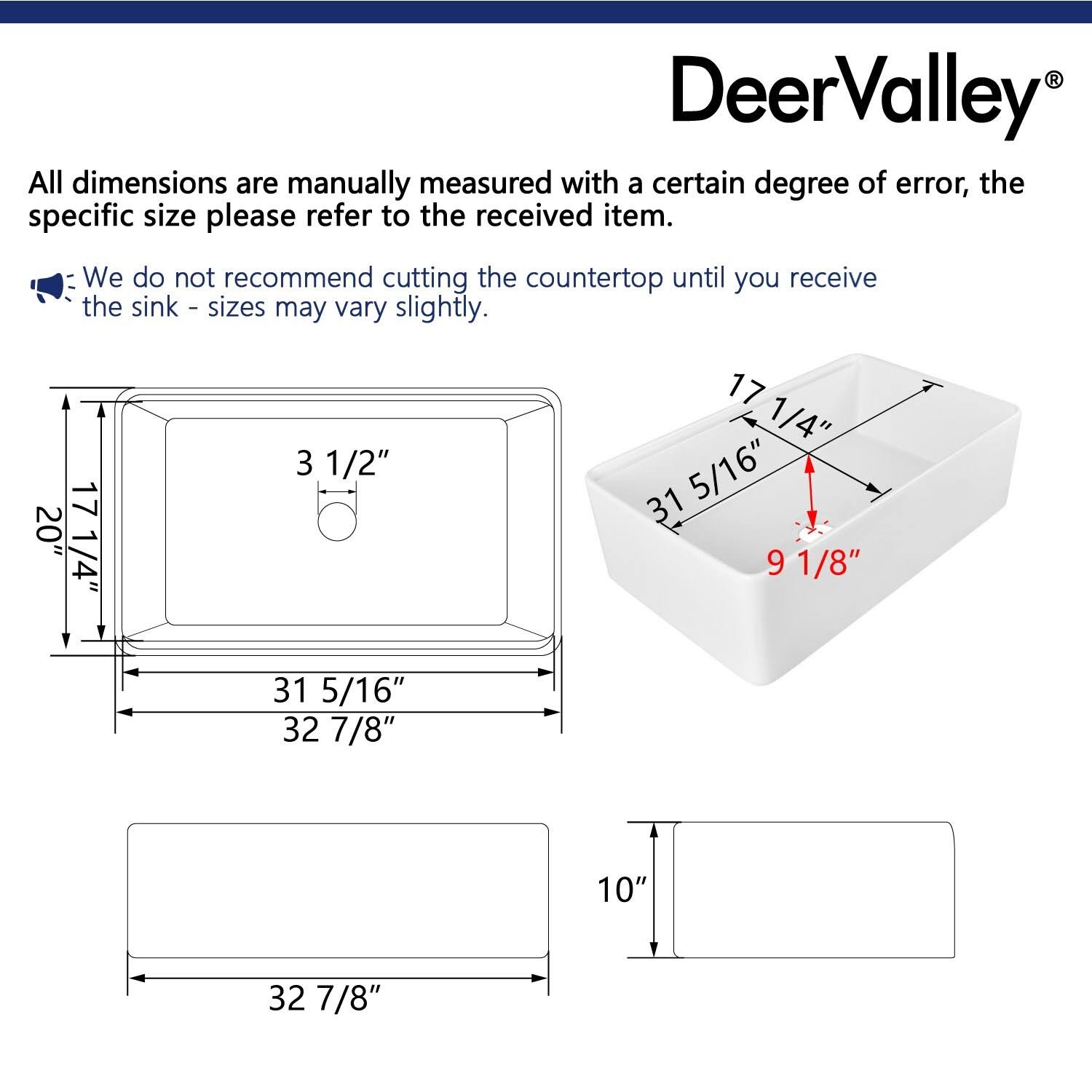 DeerValley White Fireclay 33 in. Single Bowl Farmhouse Apron Workstation Kitchen Sink with Accessories