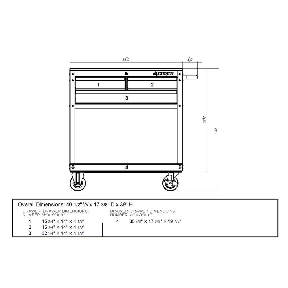 Husky HOUC3603B1QWK 36 in. W x 17 in. D Standard Duty 3-Drawer Rolling Tool Cart with Hardwood Top in Gloss Black