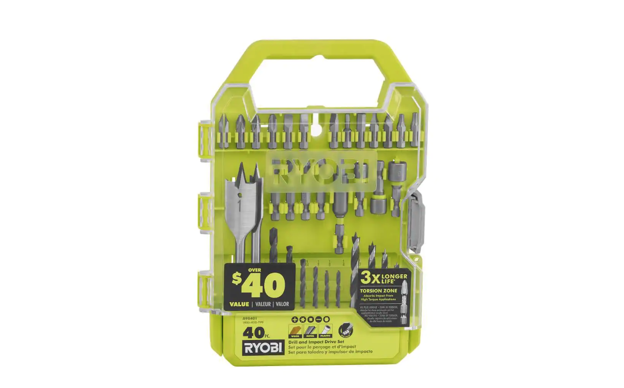 RYOBI PSBDD01K-A98401 ONE+ HP 18V Brushless Cordless Compact 1/2 in. Drill/Driver Kit with (2) 1.5 Ah Batteries. Charger. Bag. & 40PC Bit Set