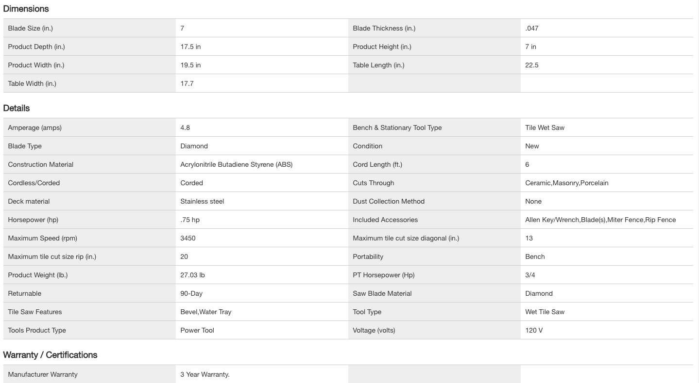 RYOBI WS722 7 in. 4.8 Amp Tabletop Tile Saw