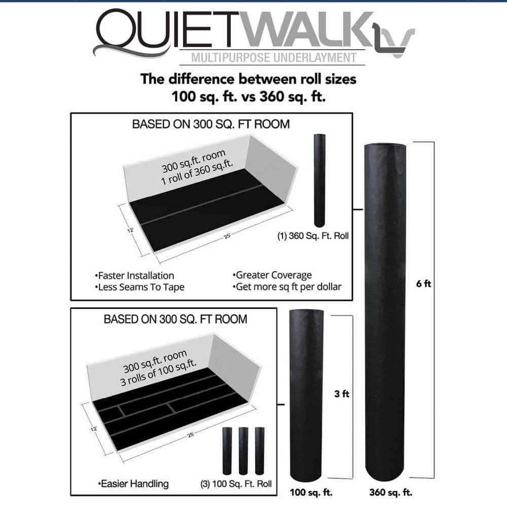 QuietWalk QWLV360 360 sq. ft. x 6 ft. x 60 ft. x 1.4 mm Acoustical Underlayment with Vapor Barrier for All Vinyl Plank Flooring