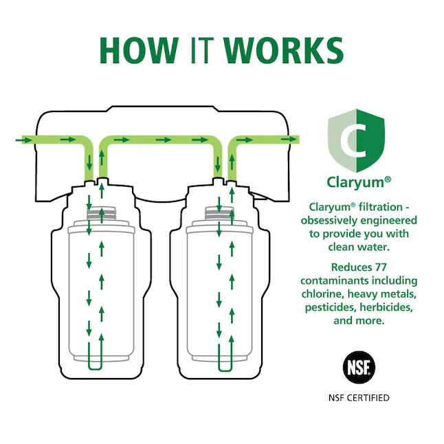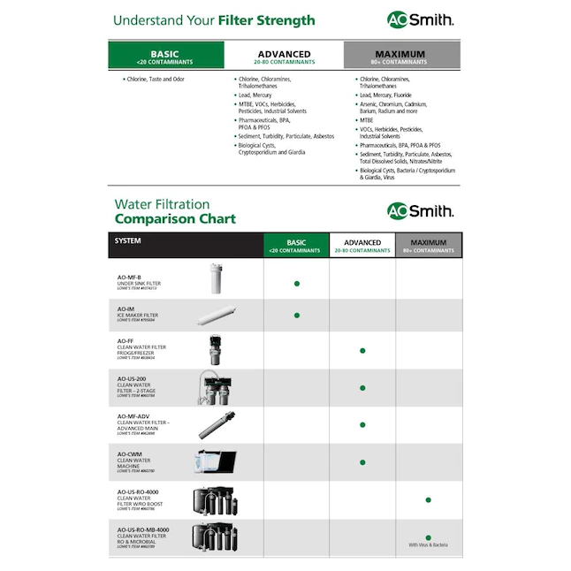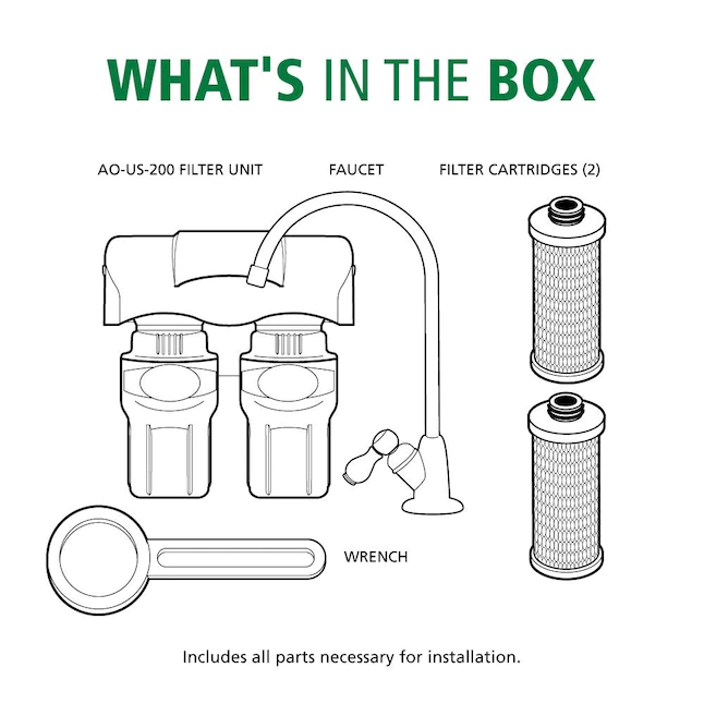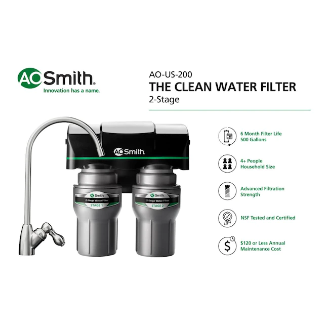 AO Smith 2-Stage Under Sink Clean Water Faucet Filter - NSF Certified Carbon Block Drinking Water Filtration System - AO-US-200