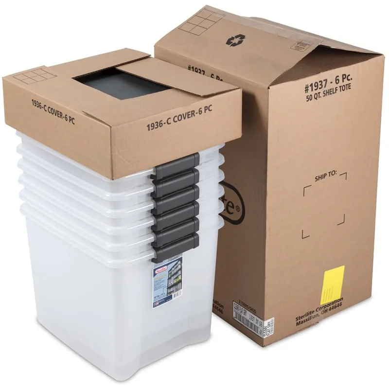 Sterilite ShelfTotes 50 Quart Latched Plastic Storage Container. (18 Pack)
