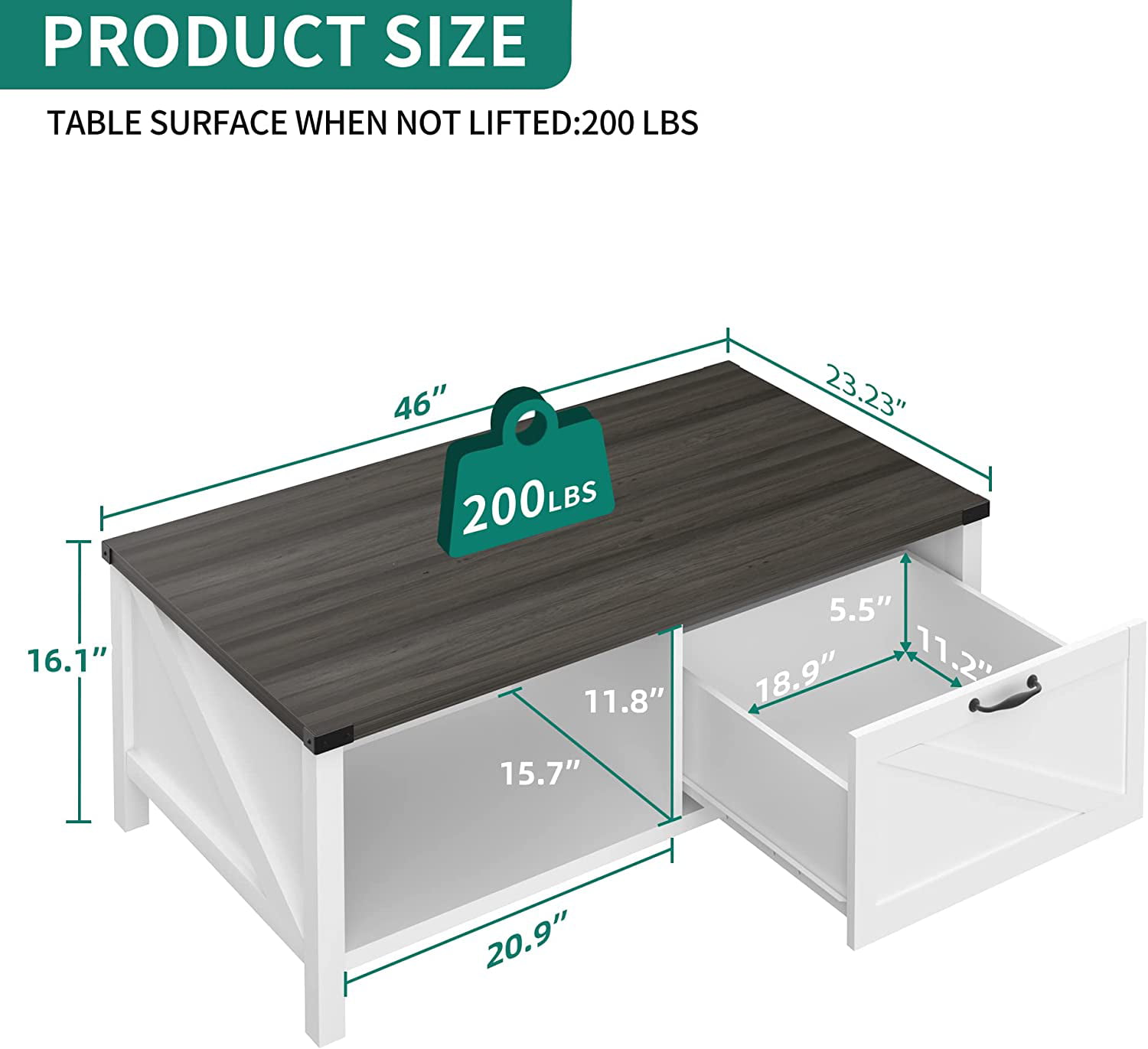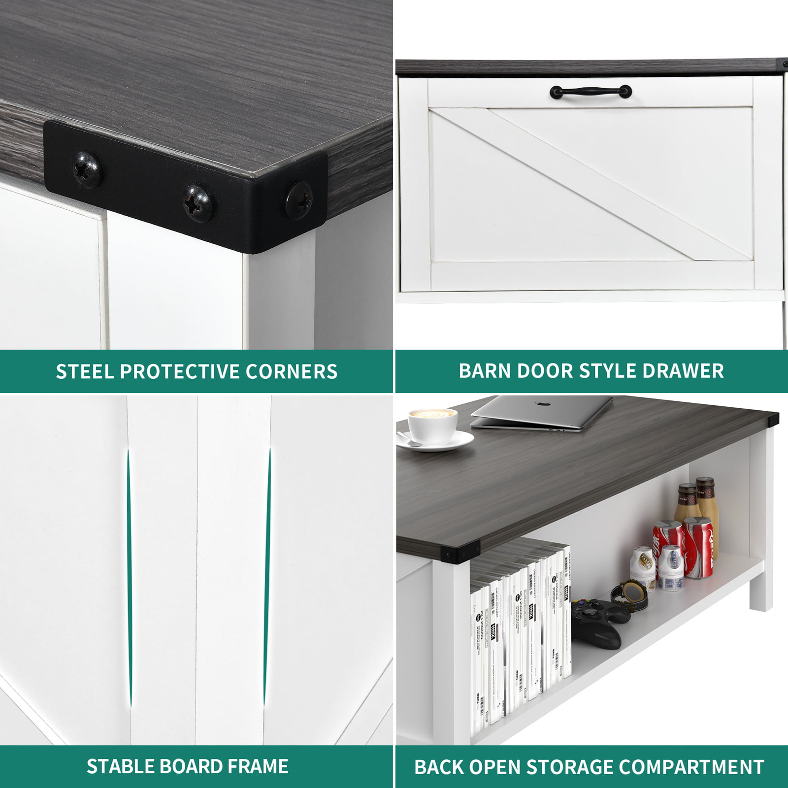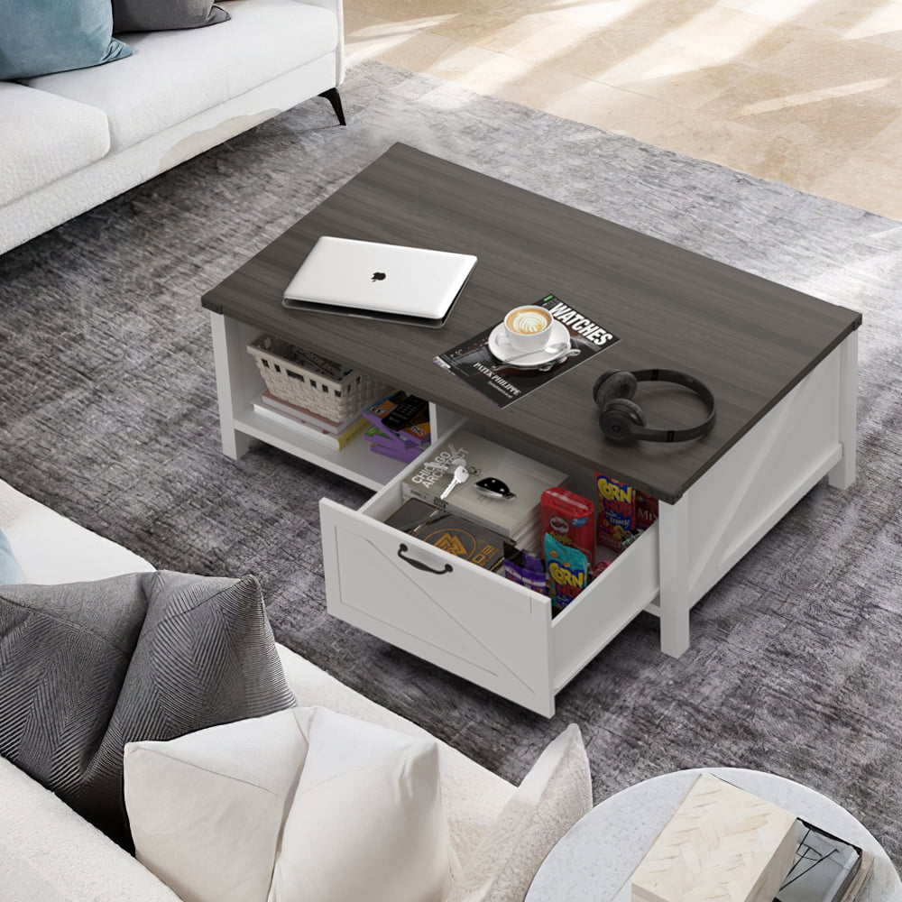 YITAHOME Coffee Table with Storage. Wood Coffee Tables. with Half Open Storage Table. Farmhouse Coffee Tables for Living Room. White & Gray