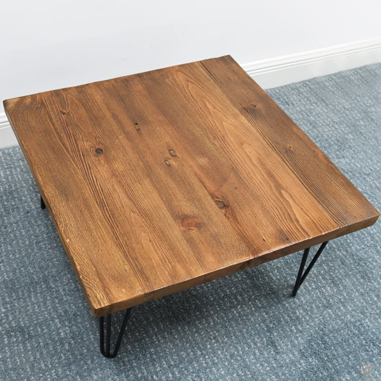 Greenage Old Pine Wood Square Coffee Table-27.6″x27.6″x15.5″H