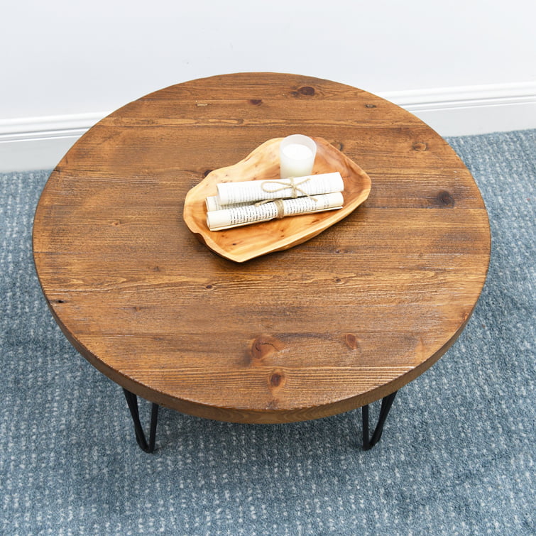 Greenage Old Pine Wood Round Coffee Table-27.6″x27.6″x15.5″H