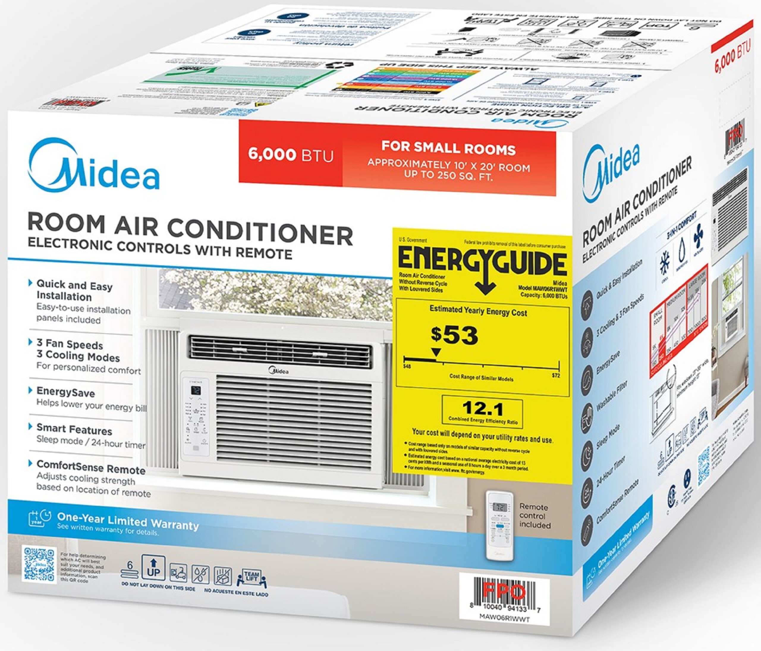 Midea 6.000 BTU 115V Window Air Conditioner with Comfort Sense Remote. White. MAW06R1WWT